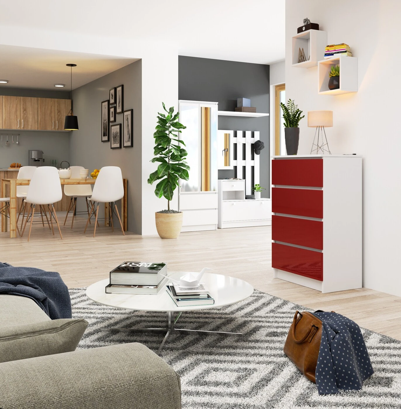 Aprašymas buvo automatiškai išverstas, gali pasitaikyti klaidų. - Komoda iš dilimui atsparios laminuotos plokštės - Priekiniai skydai pagaminti iš 19 mm MDF plokštės AKRILINIO RAUDONO GLOBOS - Stalčiai yra ant metalinių ritinėlių kreiptuvų - kraštai padengti ABS briauna, užtikrinančia aukštą apsaugą nuo pažeidimų - Savaime surenkama krūtinė stalčių - Instrukcija pridedama - Garantija 24 mėn.