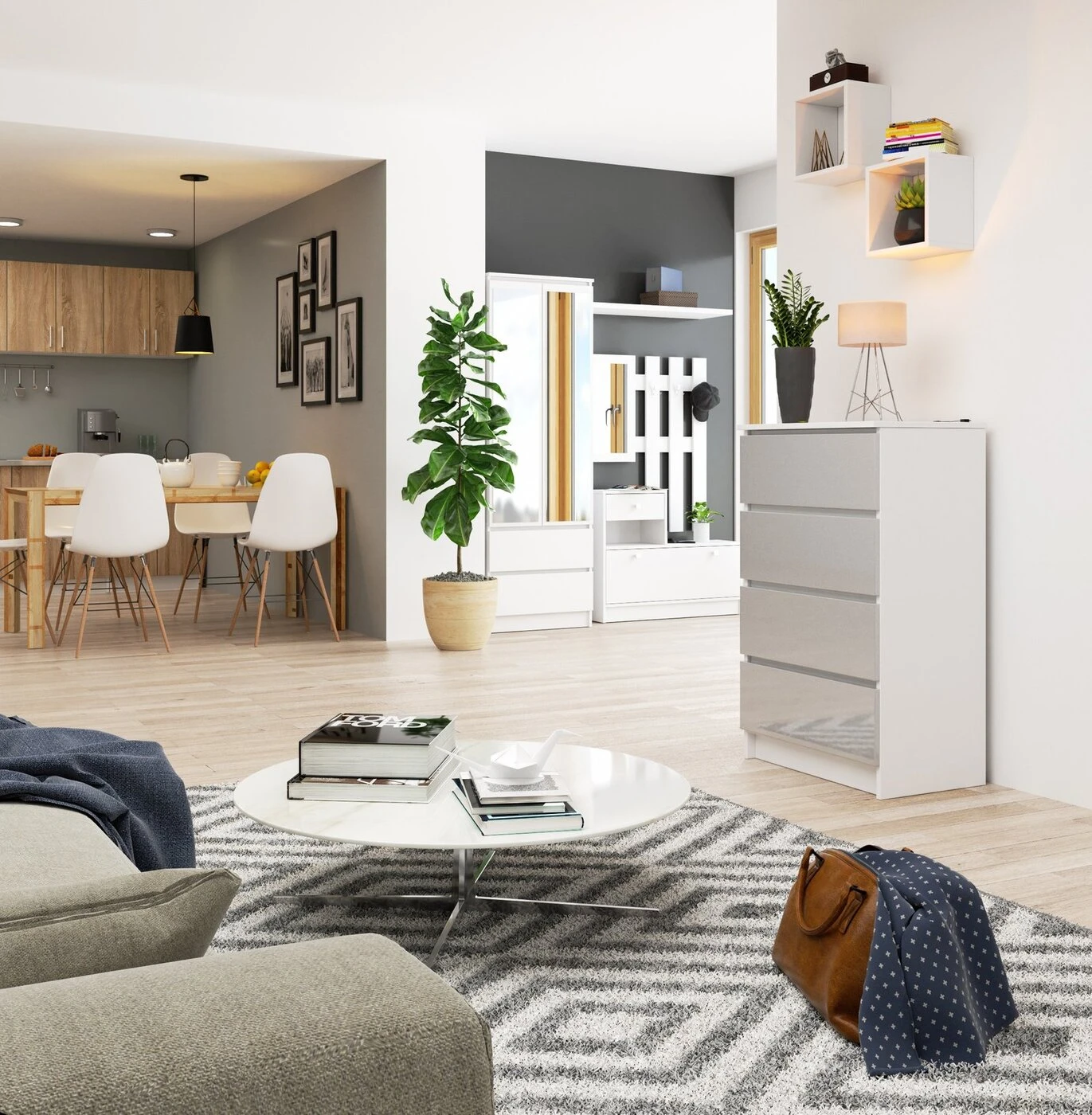 Aprašymas buvo automatiškai išverstas, gali pasitaikyti klaidų. - Komoda iš dilimui atsparios laminuotos plokštės - Priekiniai skydai pagaminti iš 19 mm MDF plokštės AKRILINIS METALINIS BIZDUMAS - Stalčiai yra ant metalinių ritinėlių kreiptuvų - kraštai padengti ABS briauna, užtikrinančia aukštą apsaugą nuo pažeidimų - Savaime surenkama krūtinė stalčių - Instrukcija pridedama - Garantija 24 mėn.