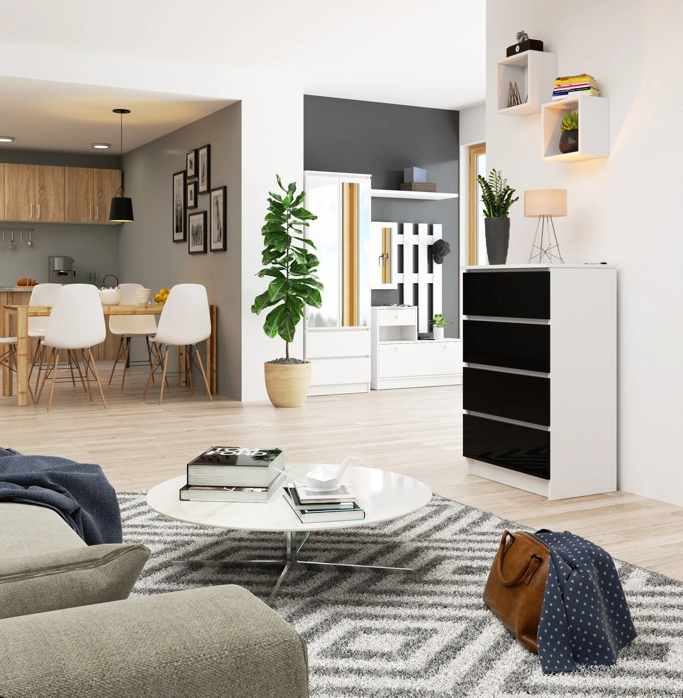 Aprašymas buvo automatiškai išverstas, gali pasitaikyti klaidų. - Komoda iš dilimui atsparios laminuotos plokštės - Priekiniai skydai pagaminti iš 19 mm MDF akrilo, juodo blizgesio - Stalčiai yra ant metalinių ritinėlių kreiptuvų - Kraštai padengti ABS briauna, kad būtų gerai apsaugota nuo pažeidimų - Savaime surenkama dėžė stalčiai - Instrukcija pridedama - Garantija 24 mėn.