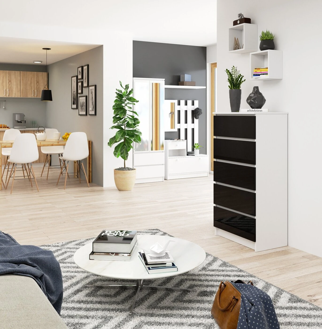 Aprašymas buvo automatiškai išverstas, gali pasitaikyti klaidų. - Komoda iš dilimui atsparios laminuotos plokštės - Priekiniai skydai pagaminti iš 19 mm MDF plokštės AKRILINIO JUODOS BIZDUS - Stalčiai yra ant metalinių ritinėlių - Kraštai padengti ABS briauna, kad būtų apsaugota nuo pažeidimų - Savarankiškai surenkama komoda - Pristatymo instrukcija - Garantija 24 mėn.