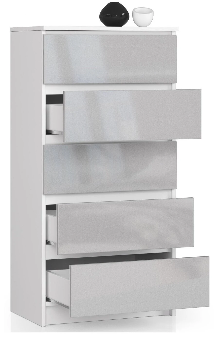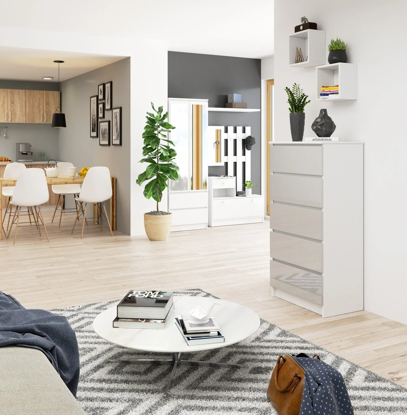 Aprašymas buvo automatiškai išverstas, gali pasitaikyti klaidų. Komodos yra baldai, kurie gali būti sėkmingai naudojami daugelyje gyvenamųjų kambarių. Jie puikiai tinka svetainėms, miegamiesiems, valgomiesiems ar jaunimo kambariams. Pristatomas gaminys sujungia dvi nesenstančias spalvas – pilką ir baltą – todėl puikiai dera prie modernaus stiliaus. Baldai neabejotinai tiks ir skandinaviško stiliaus interjeruose. Penki erdvūs stalčiai suteikia galimybę laikyti daugybę daiktų, todėl jis naudojamas ir biuruose. - Pateiktas K 60 cm baldas buvo pagamintas iš laminuoto lenta, pasižyminti dideliu atsparumu dilimui; - Komodos fasadai pagaminti iš 19 milimetrų akrilo METALIK GLOSS MDF; - Penki erdvūs stalčiai juda ant metalinių ritinėlių; p> - Stalviršis, šonai ir fasadai faneruoti ABS briauna; - Baldai skirti montuoti savarankiškai; - Surinkimo instrukcija yra komplekte; – gaminio garantija galioja dvidešimt keturis mėnesius.