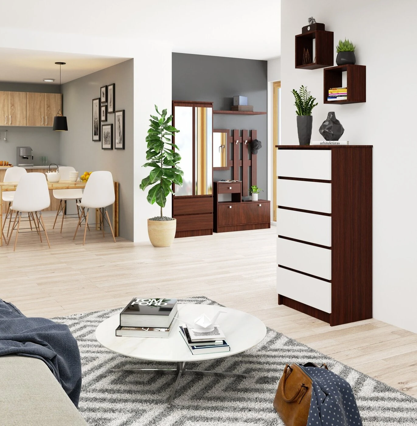 Aprašymas buvo automatiškai išverstas, gali pasitaikyti klaidų. Komoda yra labai populiarus baldas. Jis atrodo gražiai ir tuo pačiu leidžia paslėpti daugybę daiktų ir dalykų. Mūsų pasiūlyme yra CHEST K60 – itin elegantiškas ir funkcionalus. Jis yra 121 cm aukščio ir 60 cm ilgio, o gylis - 40 cm. Jame yra 5 stalčiai, kurie lengvai juda dėl metalinių ritinėlių kreiptuvų. Baldai pagaminti iš kokybiškos 16 mm laminuotos plokštės, kuri yra atspari dilimui. Kalbant apie kraštus, jie buvo padengti ABS apvadu, kuris apsaugo juos nuo pažeidimų. Komoda K60 yra dviejų spalvų. Jo korpusas yra wenge atspalvių, o stalčių šriftai yra balti. Dėl to baldas traukia akį iš tolo. Be to, šis baldas lengviau dera prie įvairių spalvų ir išdėstymo tipų. Dėl savo funkcionalumo jis puikiai tiks svetainėse, miegamuosiuose, kambariuose, taip pat biuruose ir biuruose. Jo paprasta forma yra universali. Kiekvienas užsakymas pateikiamas su instrukcijomis, kurios padės jums patiems surinkti baldus. Verta prisiminti, kad komoda yra tvirtai pagaminta iš patvarių medžiagų, todėl tarnaus ilgus metus. Nepaisant to, siūlome 2 metų garantiją. - Komoda pagaminta iš dilimui atsparios laminuotos plokštės - Stalčių fasadai iš laminuotos plokštės - Stalčiai juda ant metalinių ritinėlių kreiptuvų - Kraštai padengti ABS briauna, užtikrinančia aukštą apsaugą nuo pažeidimų - Savarankiškai surenkama komoda - Pristatyme pateikiamos instrukcijos - Garantija 24 mėn. /p>