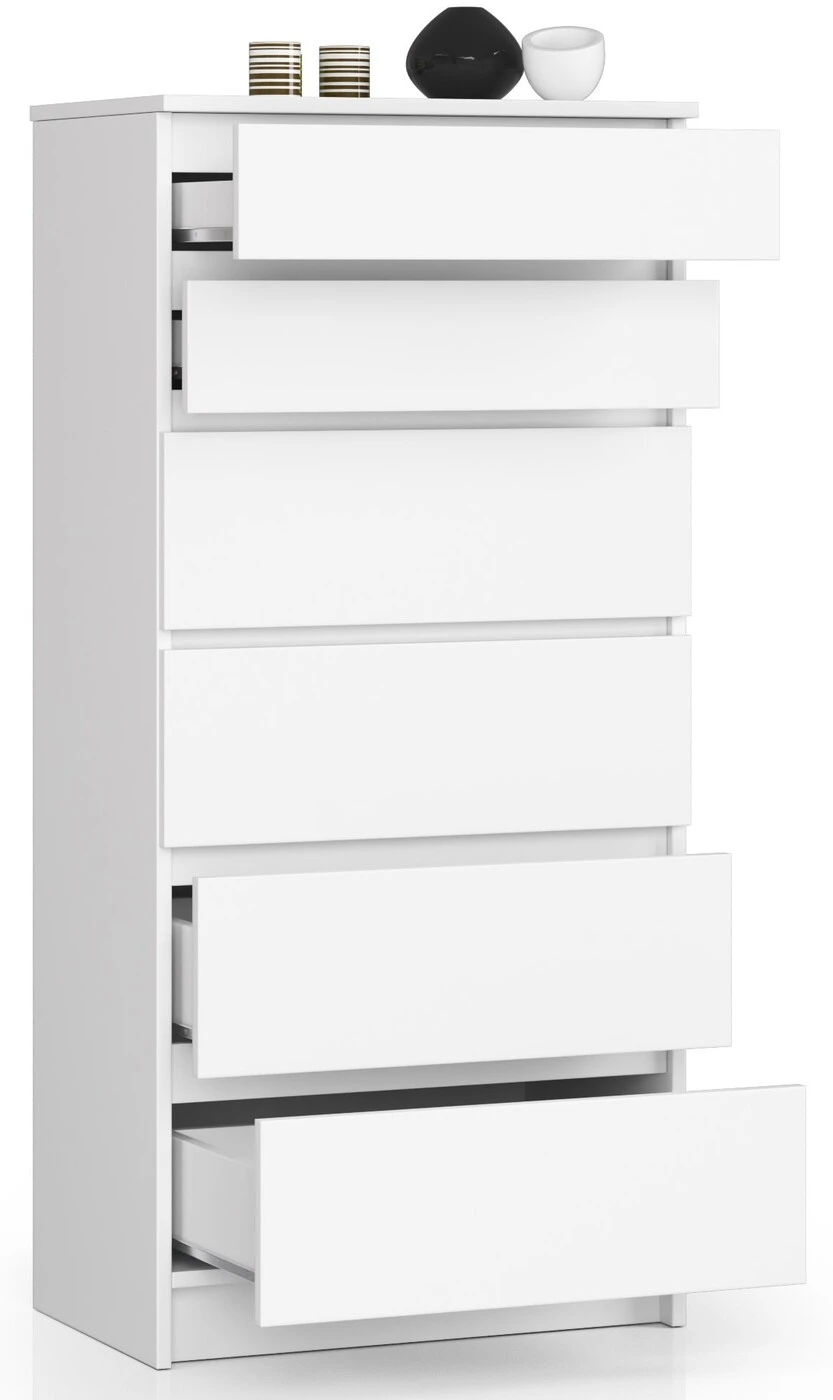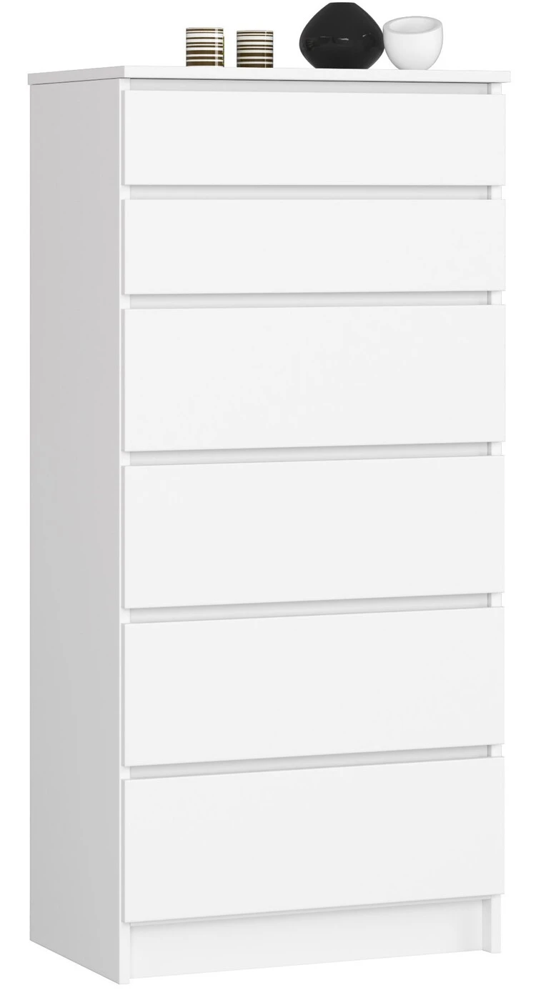 Aprašymas buvo automatiškai išverstas, gali pasitaikyti klaidų. Stilingioms, erdvioms ir šviesioms svetainėms taip pat reikia tinkamų baldų ir aksesuarų. Klientams, ieškantiems savo interjerui derančios spalvos ir kokybiškos komodos, paruošėme puikų gaminį, pagamintą tik iš laminuotos plokštės. Balta komoda puikiai atrodo ir dera prie kitų baldų dekoro. Turi 6 praktiškus, iki 40 centimetrų gylio stalčius, kuriuose galėsite susidėti visus reikalingus priedus. Komoda yra 130 centimetrų aukščio, todėl ant jos paviršiaus galima išdėlioti papildomus priedus ar TV įrangą. Patvarios sienos pagamintos iš 1,6 mm storio plokštės, kuri užtikrina tinkamus stiprumo parametrus. Komodos kraštai papildomai sutvirtinti faneruote, kuri apsaugos baldus nuo apmušalų ar kitų mechaninių pažeidimų. Puikios spalvos ir paprasta, praktiška baldų išvaizda tikrai leis juos derinti prie kitų jūsų buto gaminių. Be to, komodoje yra spintelių su įmontuotais ritininiais kreiptuvais, kurie leidžia daug lengviau išstumti ir uždaryti atskiras kameras. Išduodame parduodamą gaminio versiją, skirtą montuoti savarankiškai, taip pat pridedame reikiamas instrukcijas, kaip atlikti šį procesą. - Komoda pagaminta iš atsparaus dilimui laminuota lenta - Stalčių fasadai pagaminti iš laminuotos plokštės - Stalčiai juda ant metalinių ritinėlių kreiptuvų - Kraštai padengti ABS briauna, kad būtų apsaugota nuo pažeidimų - Savarankiškas surinkimas komoda - Pristatymo instrukcija - Garantija 24 mėn.