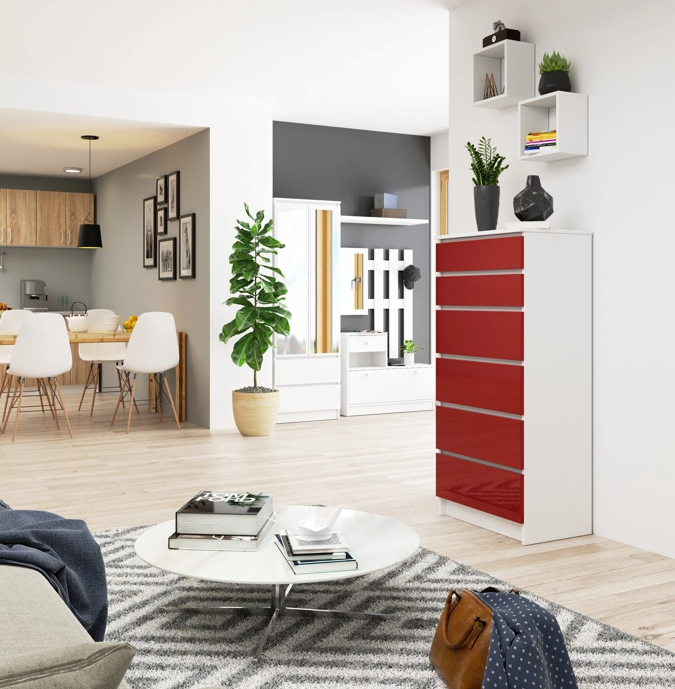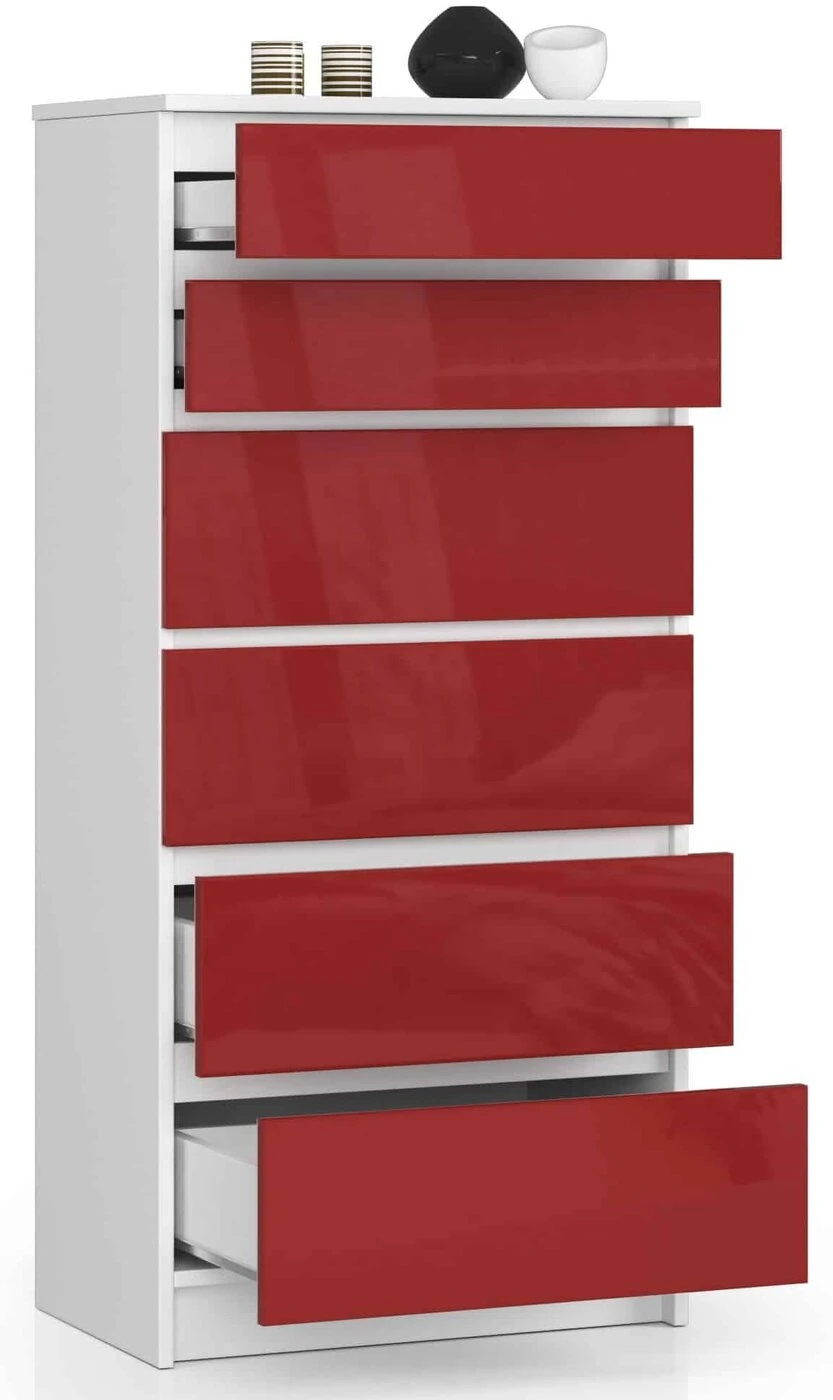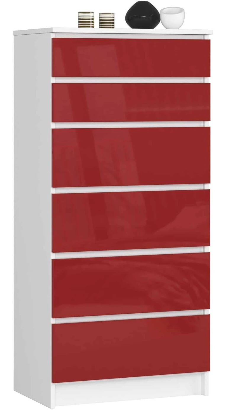 Aprašymas buvo automatiškai išverstas, gali pasitaikyti klaidų. - Komoda pagaminta iš dilimui atsparios laminuotos plokštės - Priekiniai skydai iš 19 mm MDF AKRILINIO RAUDONO BIZDIMO - Stalčiai yra ant metalinių ritinėlių kreiptuvų - Viršus, šonai ir fasadai padengti apvadu ABS - Spintelės funkcionalumą užtikrina dviejų dydžių fasadai - du viršutiniai mažesni, o apatiniai didesni - Savarankiškai surenkama komoda - Pristatoma rankiniu būdu – 24 mėnesių garantija