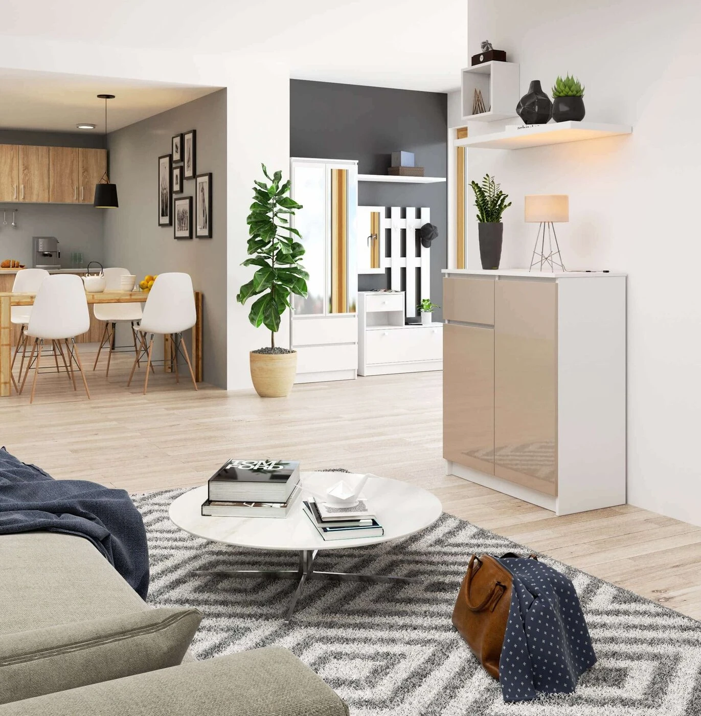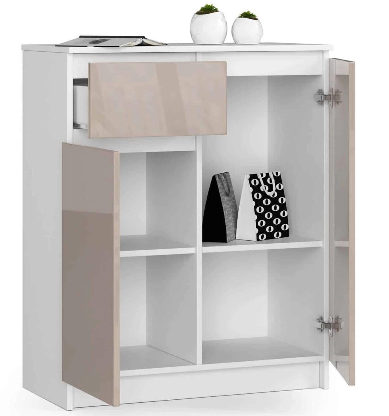 Aprašymas buvo automatiškai išverstas, gali pasitaikyti klaidų. Komodos yra vienas iš dažniausiai renkamų svetainės baldų. Nieko keisto, nes jie yra talpūs ir leidžia viduje paslėpti įvairius daiktus. Tuo pačiu metu ant jų stalviršių gali būti dedamos gėlės, nuotraukos ar dekoracijos. Mūsų pasiūlyme galite rasti šį modernaus leidimo baldą. Kalbu apie komodą K 80 cm, blizgios kapučino ir baltos spalvos. Puikiai tiks ne tik svetainėje, bet ir biure ar miegamajame. Komoda K 80 – baldas, turintis daug privalumų. Tai apima: solidumas – baldai buvo pagaminti iš aukštos kokybės 16 mm laminuotos plokštės, atsparios dilimui ir įbrėžimams, patogus naudoti - stalčius juda ant metalinių ritinėlių kreiptuvų, atsparumas - komodos kraštai padengti ABS briauna, užtikrinančia aukštą apsaugą nuo pažeidimų. talpa - komoda suteikia daug erdvės vystymuisi: stalčius ir 4 lentynos (2 durys), funkcionalumas - baldas padeda išlaikyti tvarkingą svetainę, o ant jos galima dėti dekoracijas stalviršis, moderni išvaizda – komoda puikiai dera prie dabartinių tendencijų, o baltos ir kapučino derinys traukia kitų akį, patraukli kaina, garantija – 24 mėnesiai. Komoda K 80 yra baldas, puikiai tinkantis moderniame ir minimalistiniame interjere pilietinis. Kapučino spalvos priekinės dalys traukia akį ir daro komodą unikalią. Tai tvirtas baldas, kuris tarnaus Jums ilgus metus. Komoda skirta savarankiškam surinkimui, tam padeda prie kiekvieno užsakymo pridedama instrukcija.