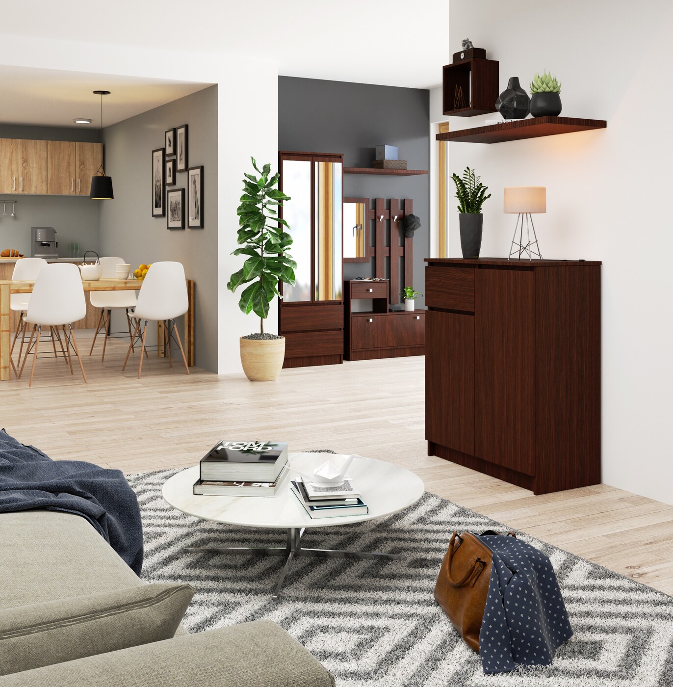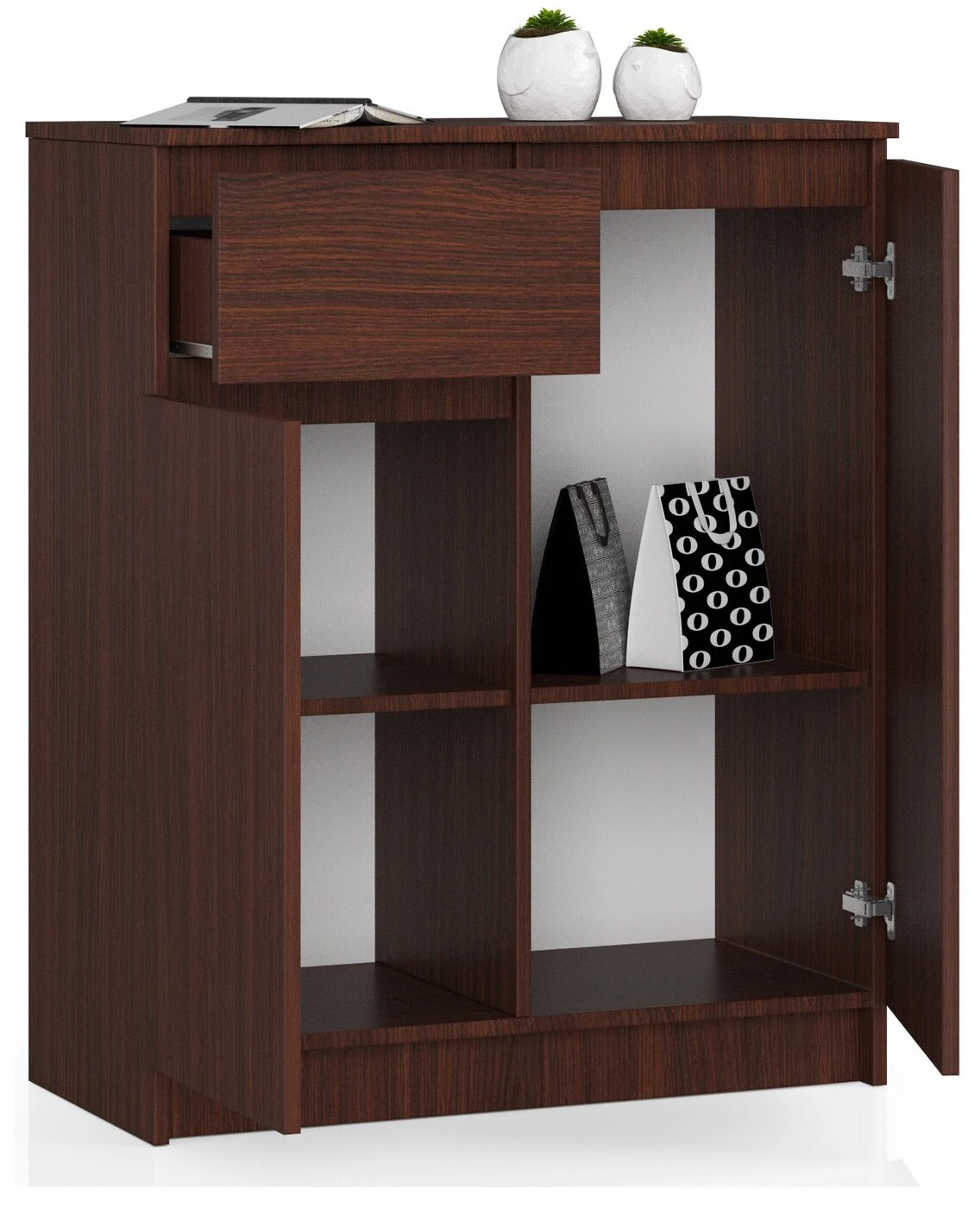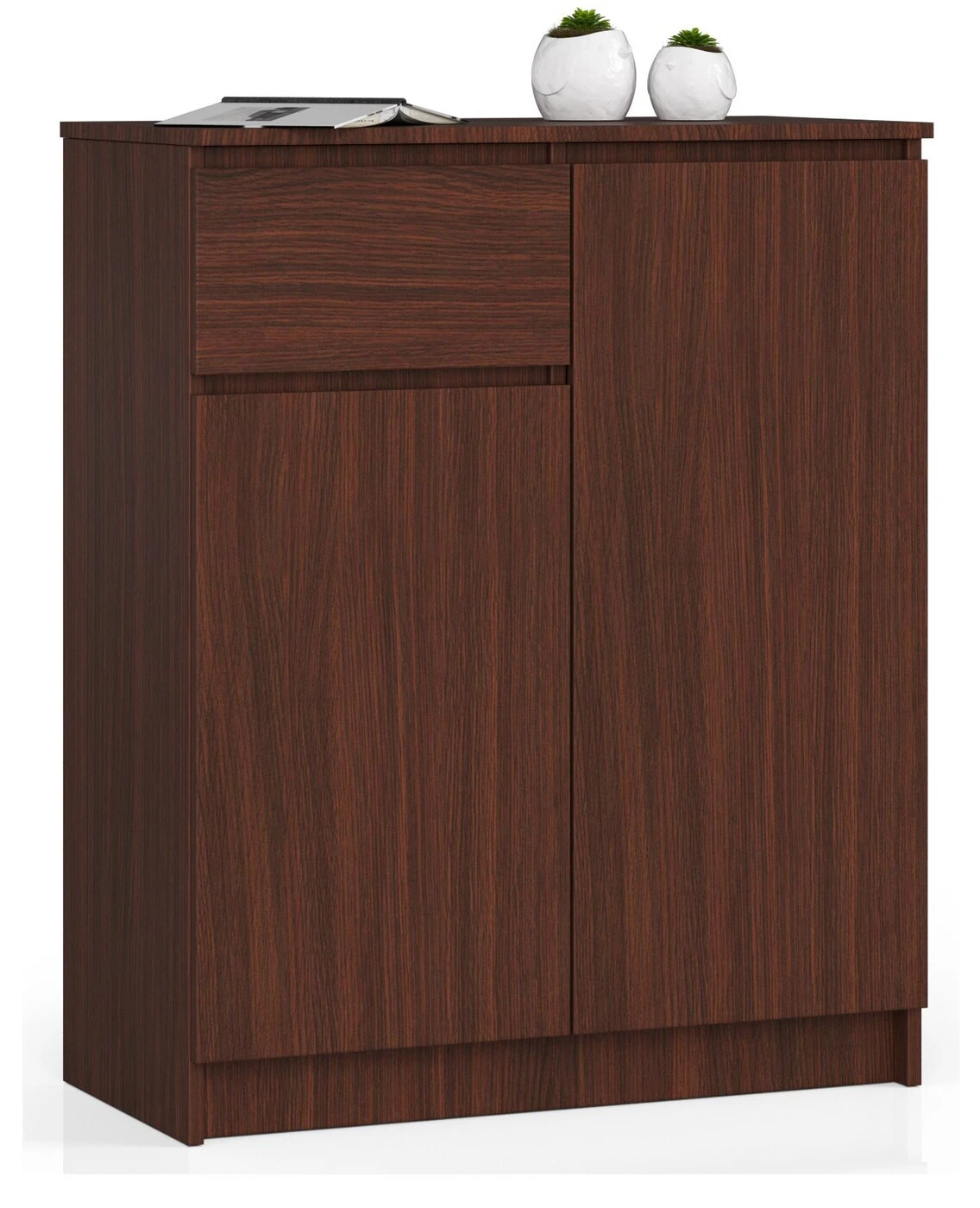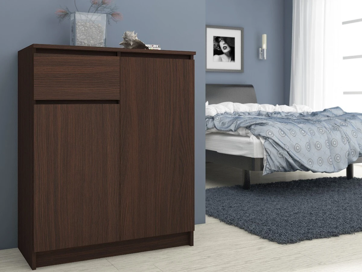 Aprašymas buvo automatiškai išverstas, gali pasitaikyti klaidų. Venge spalvos komoda su vienu stalčiu ir dviem uždaromomis spintelėmis – įdomus pasiūlymas, kuris tikrai neliks abejingas modernaus, paprasto, bet kartu elegantiško interjero mėgėjams. Komoda tiks bute ar biure, leis susidėti daugybę aksesuarų, taip pat bus unikali interjero puošmena. Atspari dilimui medžiaga, iš kurios pagaminti baldai, garantuoja mūsų internetinėje parduotuvėje už itin prieinamą kainą esančios komodos ilgaamžiškumą. Tvirtas darbas ir modernus minimalistinis dizainas lėmė įdomų pasiūlymą, kurį vertina mūsų klientai. Rekomenduojame sužinoti apie kitus komodos pasiūlymus, kurių dėka galėsite sukurti idealiai jūsų poreikius atitinkantį išdėstymą. - Komoda pagaminta iš aukštos kokybės 16 mm dilimui atspari laminuota plokštė, gamintojas Kronospan - Stalčių fasadai pagaminti iš laminuotos plokštės - Stalčius juda ant metalinių ritinėlių kreiptuvų - Kraštai yra padengtas ABS apvadu, užtikrinančiu aukštą apsaugą nuo pažeidimų - Kiekvienos durelės viduje yra po vieną lentyną. - Savarankiškai surenkama komoda - Pridedamos instrukcijos – 24 mėnesių garantija