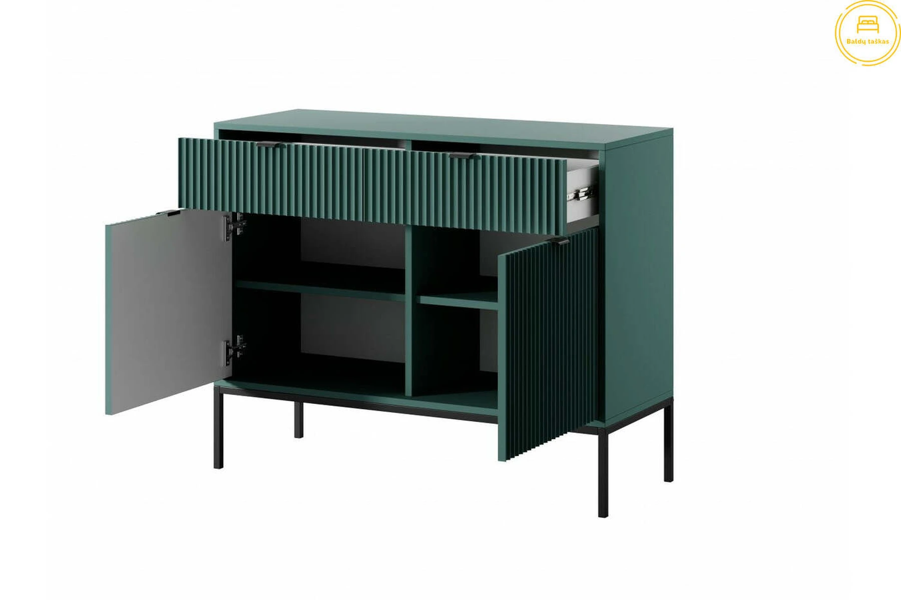 Modernus minimalistinio dizaino baldas papuoš Jūsų svetainę, o daiktus patogiai sudėsite į tam skirtus skyrius.Medžiaga: LMDP plokštė, ABS plastiku dengtos briaunos.