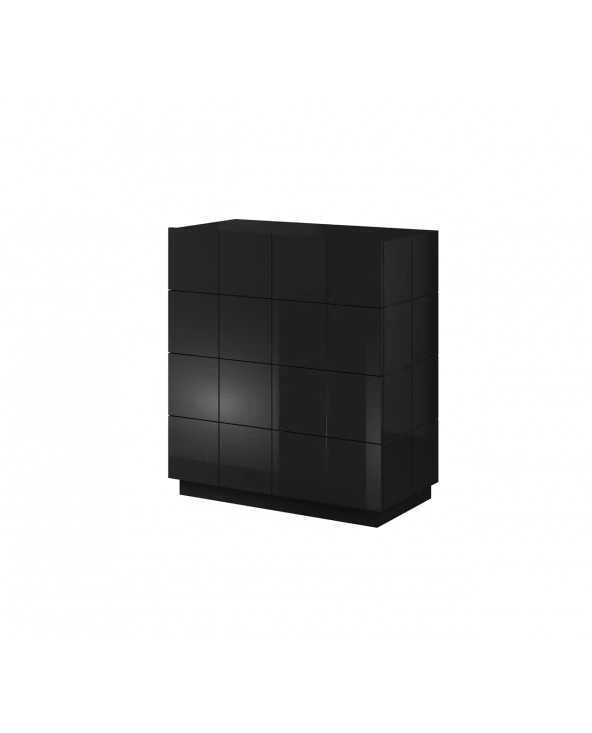 | Medžiaga | Šonai ir viršus: blizgi frezuota MDF plokštė Priekinės dalys / atvartai: blizgi frezuota MDF plokštė Kiti elementai: laminuota baldų plokštė |