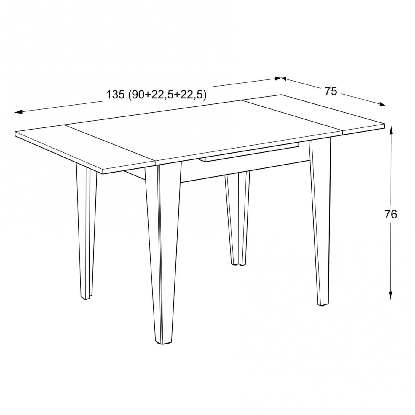 Stalas turi slankiojantį mechanizmą, kuris leidžia padidinti ilgį 45 cm. Puikus pasirinkimas virtuvei, svetainei, terasai ar studijai.