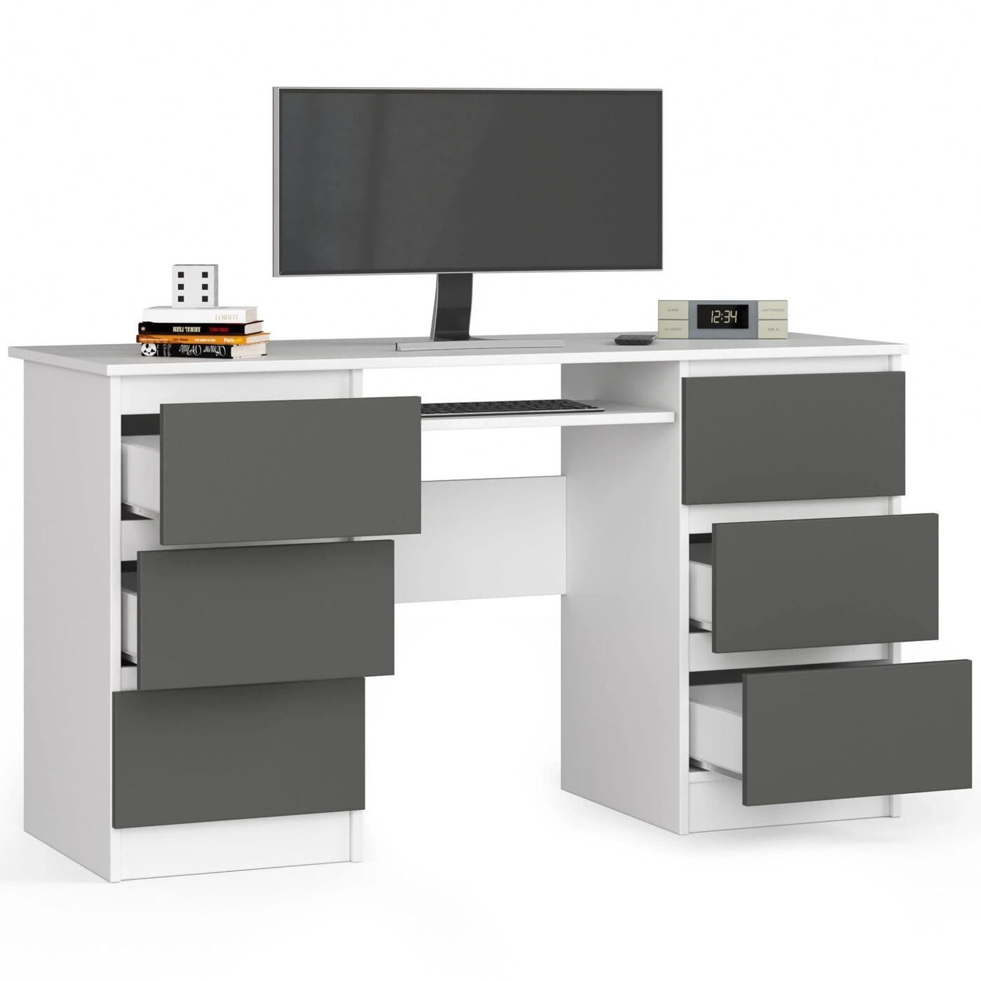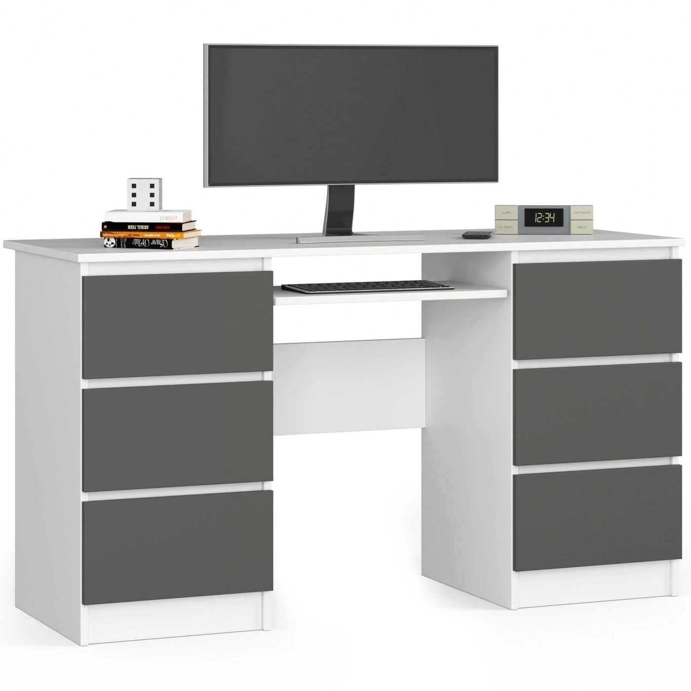 Aprašymas buvo automatiškai išverstas, gali pasitaikyti klaidų. Nesvarbu, ar dirbate biure, ar nuotoliniu būdu, prie savo stalo praleidžiate bent kelias valandas per dieną. Taigi puikiai žinote, kad nuo šio baldo pasirinkimo didele dalimi priklauso jūsų darbo komfortas. Kompiuterio stalas A-11 puikiai tinka šiam vaidmeniui. Turi net 6 erdvius 34,5 cm gylio stalčius, kuriuose nesunkiai sutalpinsite visus dokumentus ir įrangą. Rašomasis stalas taip pat turi ištraukiamą lentyną, ant kurios galėsite patogiai pasidėti klaviatūrą ar paslėpti būtiniausius užrašus. Klasikinis baltos ir, tamsiai rudas spalvos derinys puikiai derės prie paprastų, elegantiškų biurų. Kodėl vis dar verta pirkti mūsų kompiuterių stalus? Viršus, šonai ir priekinės dalys yra padengtos ABS briauna, kuri garantuoja atsparumą dilimui ir drėgmei. Stalčiai ir klaviatūros lentyna juda ant metalinių ritinėlių kreiptuvų galimybė savarankiškai surinkti dėl pridedamos instrukcijos Rašomasis stalas pagamintas iš laminuotos plokštės, atsparios dilimui ir drėgmei, todėl galite būti tikri, kad išsiliejusi kava ar sultys nesugadins jūsų baldų Dėl 6 erdvių stalčių ir ištraukiamos lentynos galite lengvai sutvarkyti savo stalą Suteikiame 24 mėnesių garantiją A-11 kompiuterio stalas yra 135 cm pločio ir 77 cm aukščio. Stalčiai yra tiek kairėje, tiek dešinėje baldo pusėje. Dėl tokio dydžio ir darbo tvirtumo galite būti tikri, kad stalas tiks kiekvienam darbuotojui. Taip pat rekomenduojame peržiūrėti likusią kolekcijos dalį, kurios dėka sukursite tobulą rinkinį savo biurui.