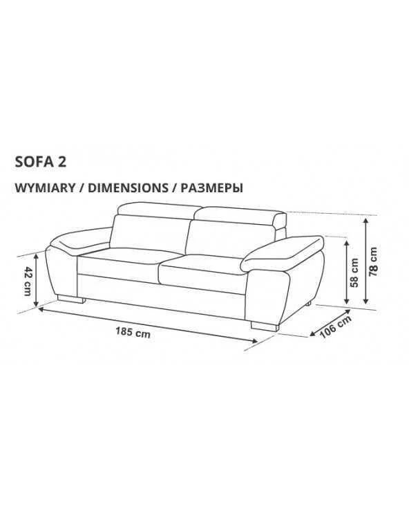 Plotis | 3-vietės 215 cm; 2-vietės 185 cm |