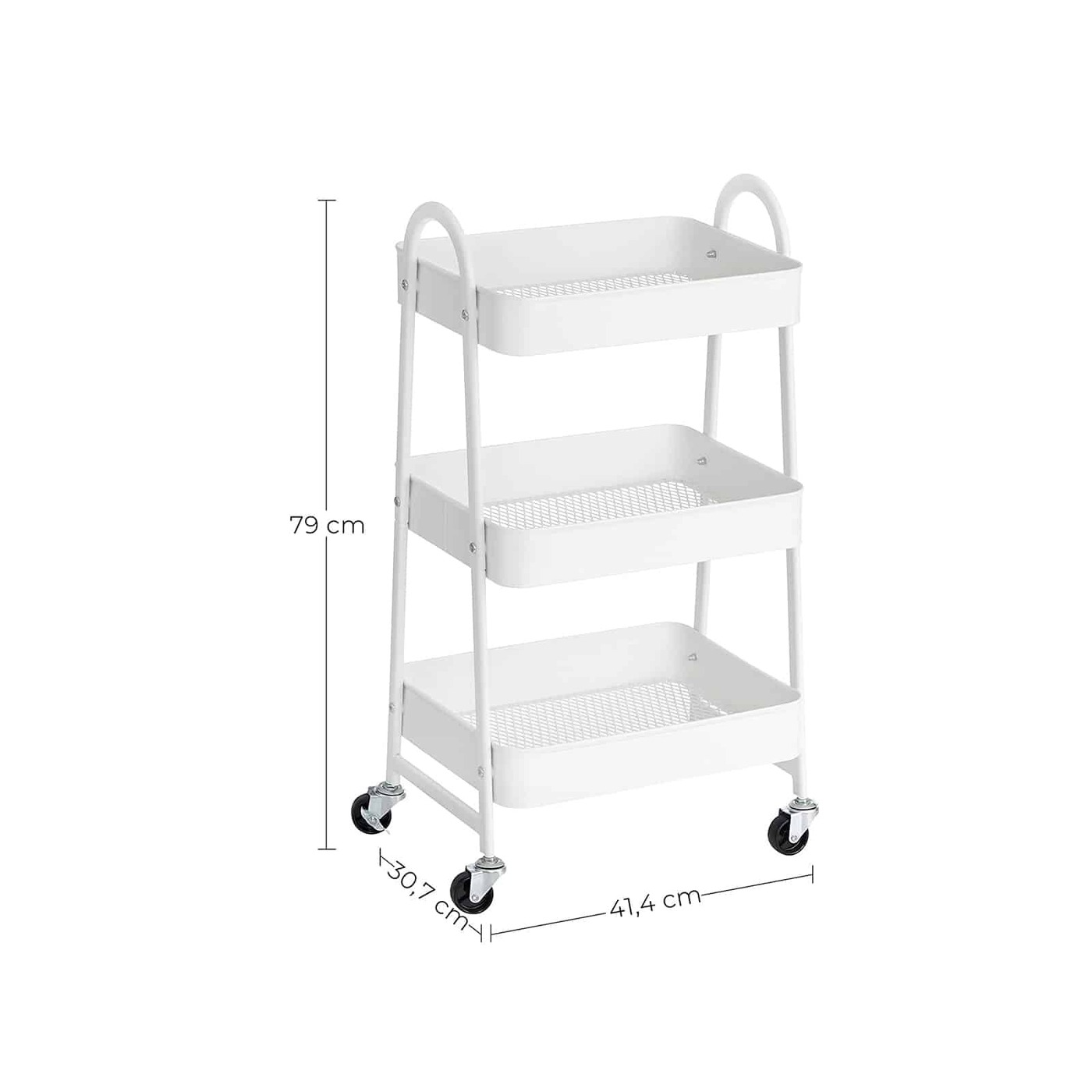 Aprašymas buvo automatiškai išverstas, gali pasitaikyti klaidų.Tvirtas PLIENINIS RĖMAS, 3 LENTYNOS IR 4 AUKŠTOS KOKYBĖS RATAI (2 IŠ KURIŲ UŽRAKINAMI) – Sukite šią SONGMICS lentyną ten, kur jums reikia daugiau vietos. Į skalbyklą: įstumkite šią lentyną į skalbyklą, kad sutvarkytumėte ploviklį, audinių minkštiklį. , valymo reikmenis ir tt tvarkingai laikyti. Rytoj skalbimo diena! Bet nesijaudinkite, visi indai jau vežimėlyje ir laukia naudojimo!Virtuvėje: prieskoniai viršutinėje lentynoje, vaisiai viduryje ir daržovės apačioje – viskas turi savo vietą! Pagaliau galite išlaisvinti savo darbo paviršius iš chaoso ir vėl juos protingai naudoti Biure: šioje lentynoje galite laikyti savo biuro reikmenis ir sukurti tvarką ant stalo. Kad galėtumėte dirbti produktyviai, tvarkinga darbo vieta yra viskas ir pabaiga! Kai jūsų biurui reikia žalumos, galite įdėti keletą mažų sukulentų į viršutinę šios lentynos lentyną. Pagalvokite ne apie dėžutę! Šio vežimėlio laukia begalė naudojimo galimybių! Gimtadienio dovanas sukti kaip staigmeną? parduodu knygas? Arba pristatyti mažus augalėlius... Ką dar? Į šį serviravimo vežimėlį telpa įvairūs daiktai.Išsami informacija apie gaminį: Spalva: Balta Medžiaga: Plienas Dydis: 41,4 x 30,7 x 79 cm (P x P x A) Svoris: 4,2 kg Maks. Statinė keliamoji galia vienam lygiui: 10 kg Pristatymo komplektas: 1 x vežimėlis 1 x priedų paketas 1 x instrukcijos (DE, EN, FR, ES, IT)