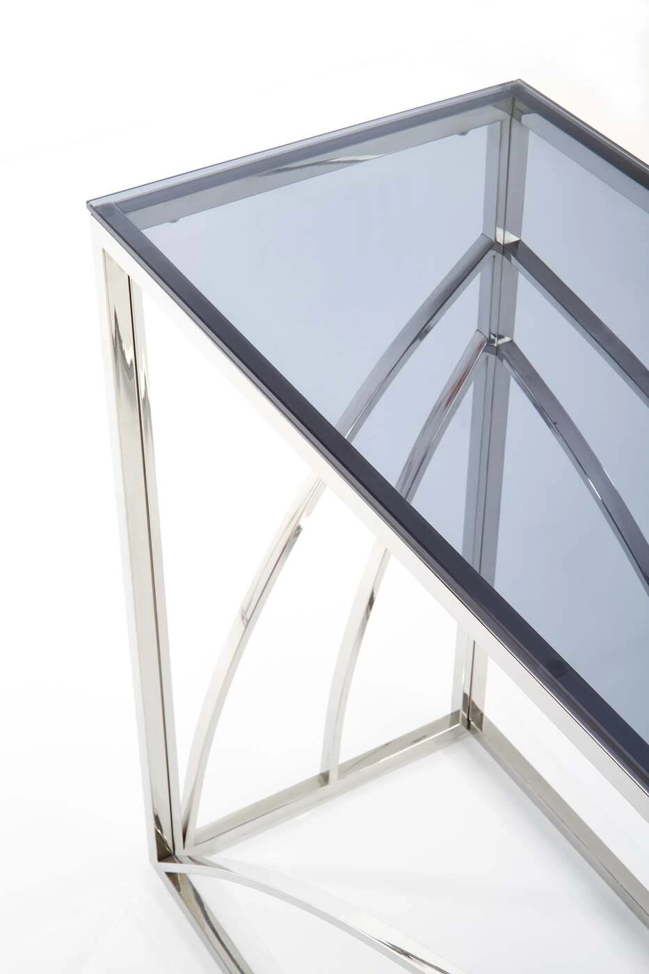 matmenys: 120/40/78 cm, medžiaga: stiklas / chromo plienas, spalva: rūkyta / sidabrinė