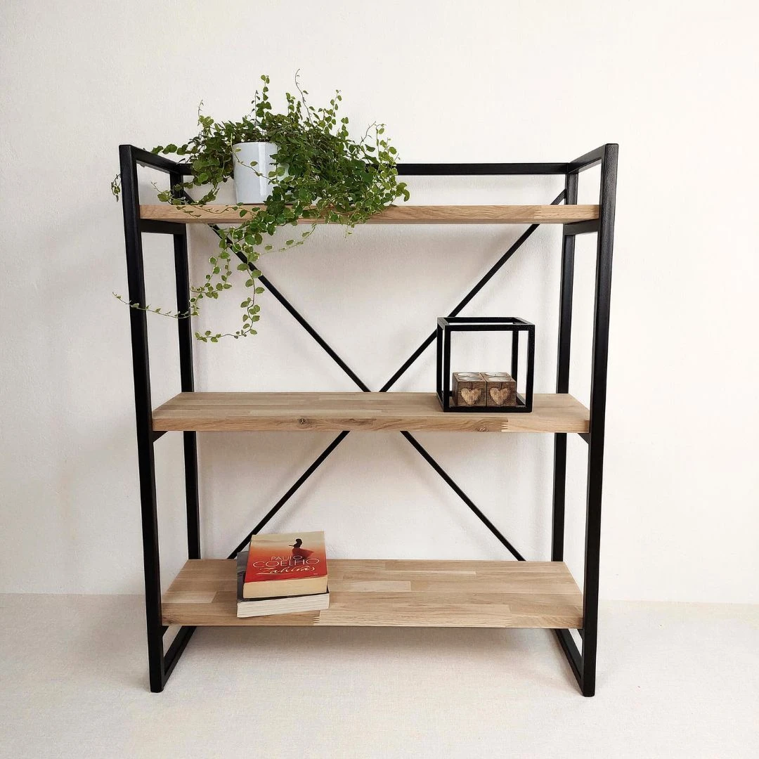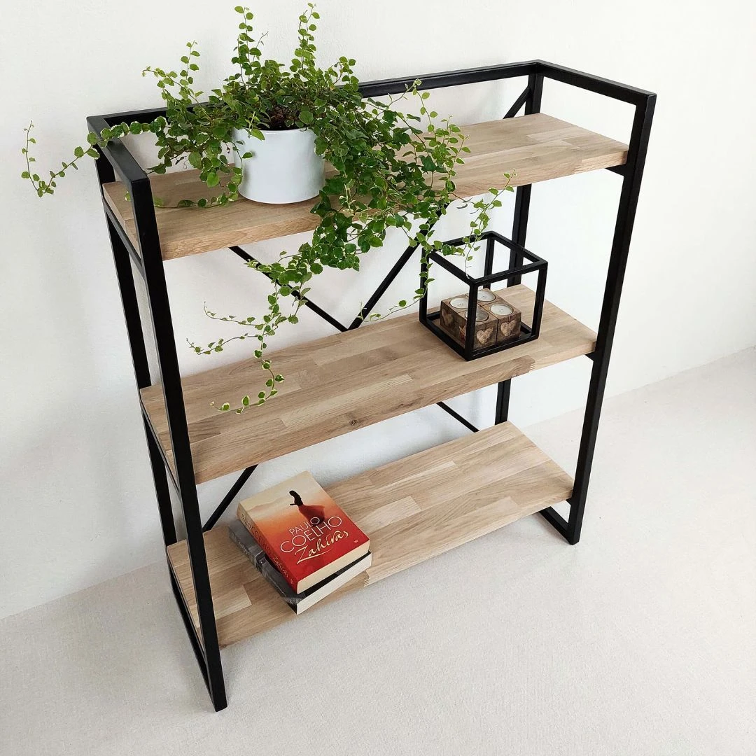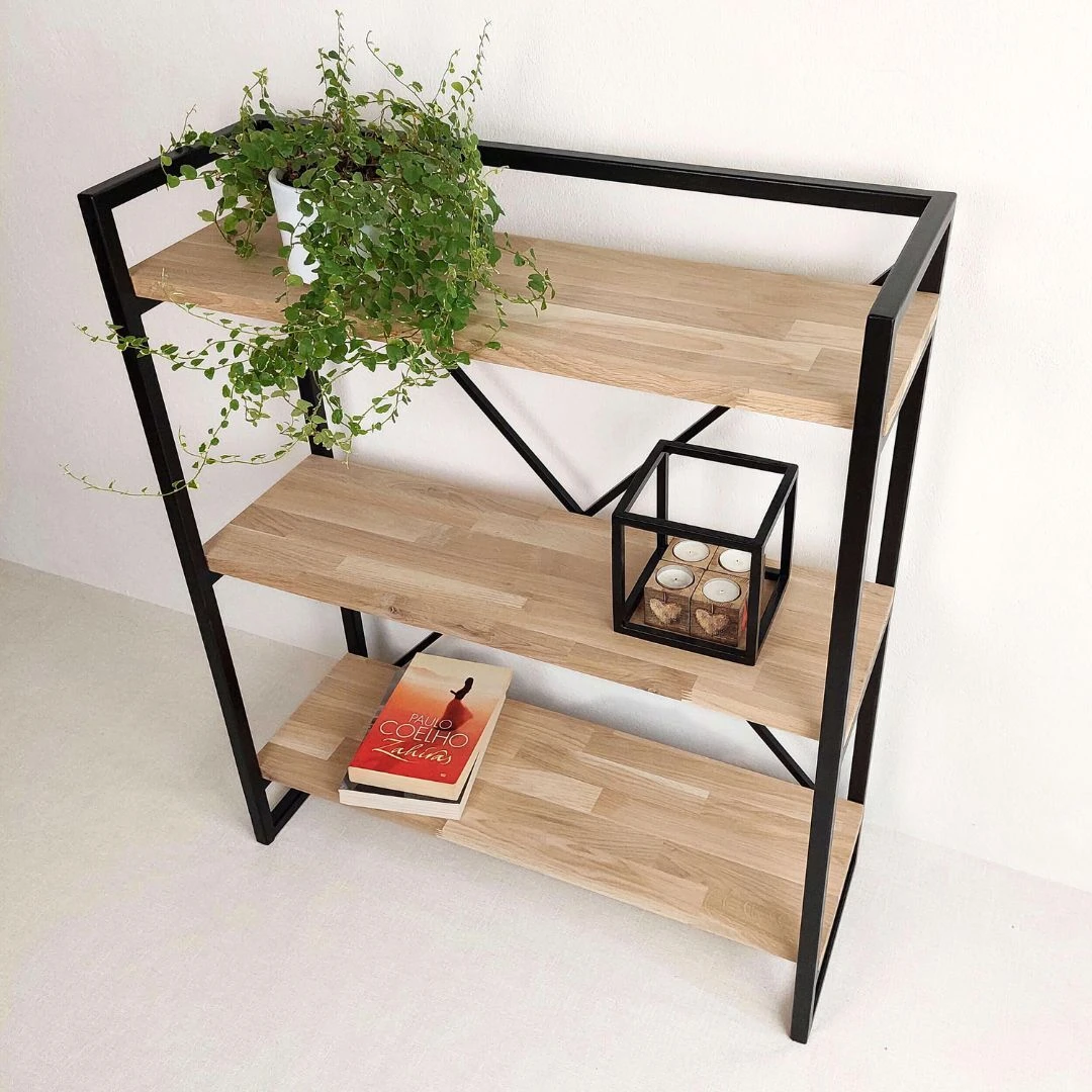 Originalaus dizaino, rankų darbo pastatoma konsolinė lentyna. Subtili interjero detalė, padedanti susikurti patogią ir neapkrautą namų aplinką. Stilinga pastatoma lentyna, pagaminta iš metalo ir ąžuolo, yra idealus pasirinkimas, kai norima sutaupyti vietos bei pagyvinti savo namų aplinką. Kompaktiška, vietą taupanti lentyna, tinkanti bet kokio dydžio erdvėse. Elegantiško stiliaus baldas, lengvai derantis tiek šiuolaikinio bei modernaus, tiek klasikinio stiliaus interjere. Konsolinė lentyna yra universalus baldas, tinkantis tiek prieškambariui ar svetainei, tiek darbo kambariui, ar netgi miegamajame.