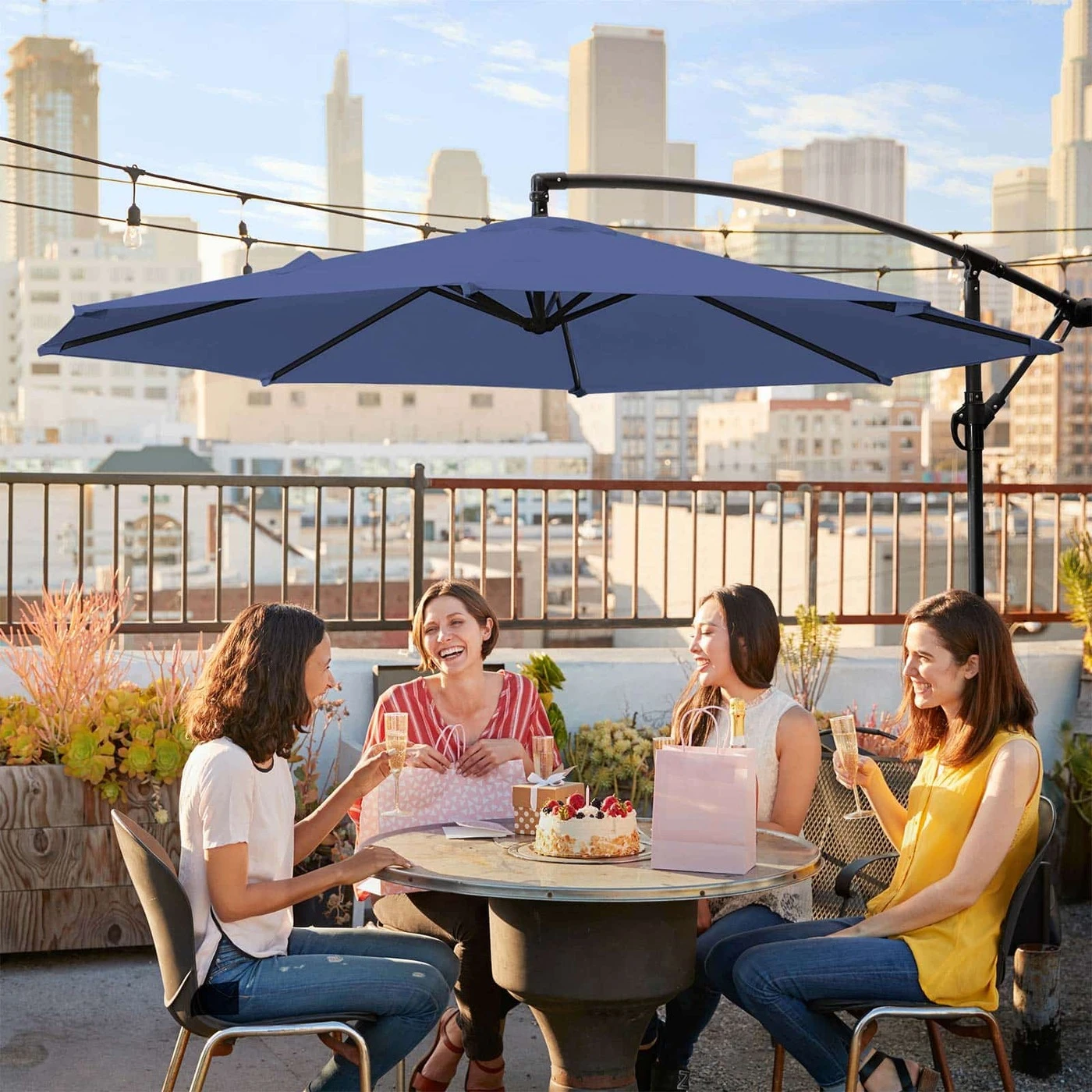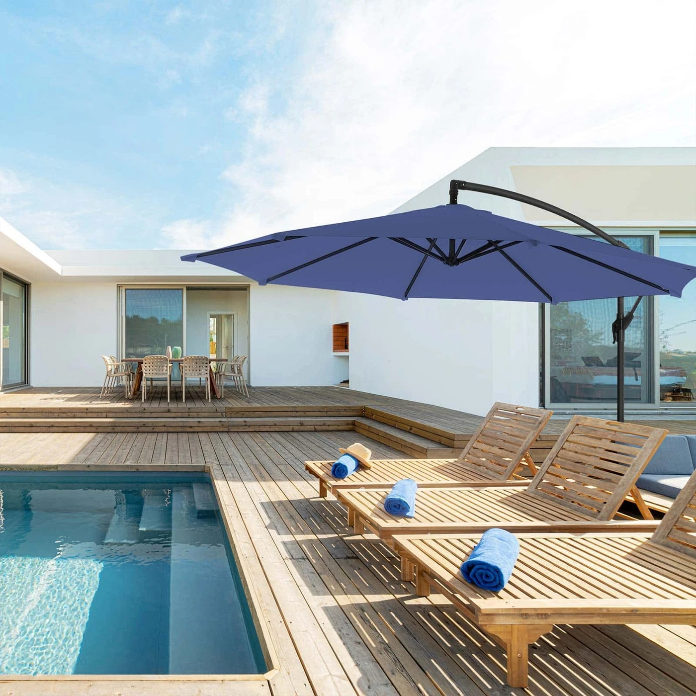 Aprašymas buvo automatiškai išverstas, gali pasitaikyti klaidų.Šilta saulė, mėlynas dangus, grynas oras, nuostabi gamta... Ko lauki? Laikas atsipalaiduoti lauke! Bijote stiprių saulės spindulių? Nesijaudink. Tiesiog atidarykite šį SONGMICS Ø 3 m skėtį ir mėgaukitės nuostabiu oru pavėsyje!Neužmirštamai vasarai: Nesvarbu, ar norite pasnausti sode, pavalgyti su draugais terasoje ar pasimėgauti kavos pertraukėle su šeima lauke oro , šis skėtis įgyvendins visus jūsų planus. Pagaminta iš 180 g/m² poliesterio audinio, užtikrina puikią UV apsaugą iki UPF 50+. Taigi jums nereikės nerimauti, kad ryški saulės šviesa pakenks akims ir paraudins odą. Vasarą būtina turėti! Tvirtas skėčio stulpas iš milteliniu būdu dengto metalo, tvirtos ir stačiakampės skėčio briaunelės, metalu sutvirtintos jungiamosios dalys – šis skėčiais bus ištikimas jūsų palydovas, jei vasarą daug laiko praleisite lauke.Išsami informacija apie gaminį: Spalva: tamsiai mėlyna Medžiaga: metalinis skėčio stulpas, 180 g/m² poliesterio audinys Ø skėčio skėtis: 3 m Aukštis: 2,45 m Svoris: 13 kg Pristatymo komplektas: 1 x skėtis 1 x stovas 1 x instrukcijos (DE, EN, FR, ES, IT) SONGMICS Pastabos: Padėkite sunkius daiktus (neįtraukta) ant pagrindo, kad užtikrintumėte gaminio stabilumą. Nespauskite skėčio per jėgą, atidarykite jį švelniai ir lėtai. Uždarykite skėtį naktį, pučiant stipriam vėjui arba lietingu oru, kad išvengtumėte žalos. Apsaugokite ekraną dangteliu (nepridedamas), kad užtikrintumėte ilgesnį tarnavimo laiką.