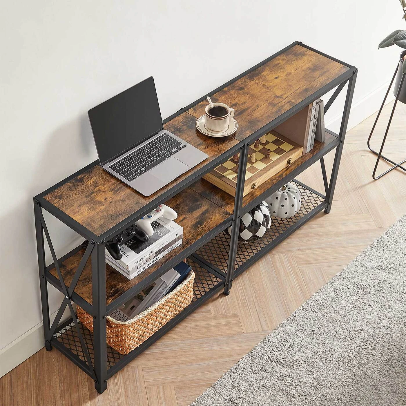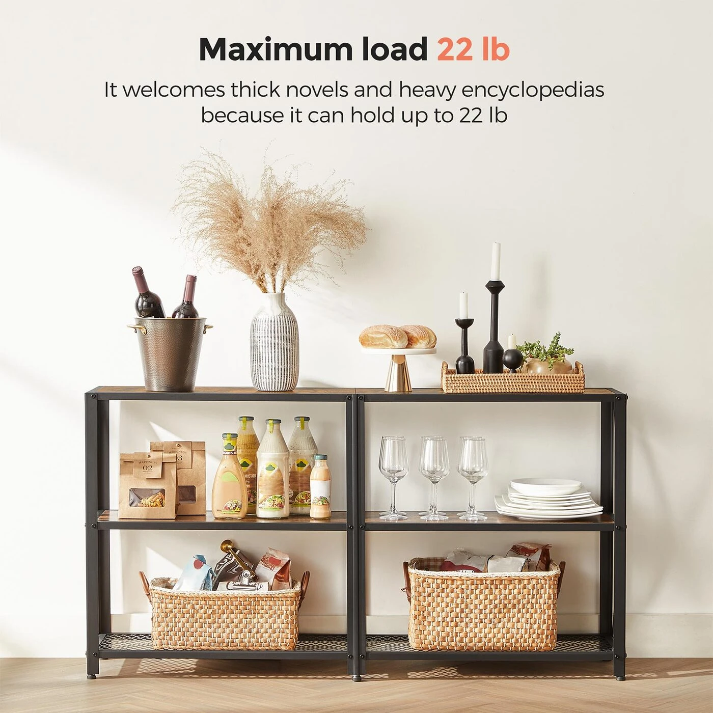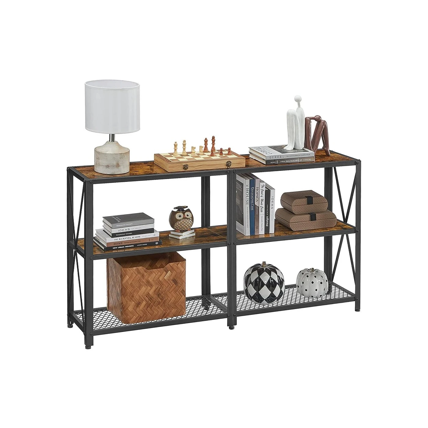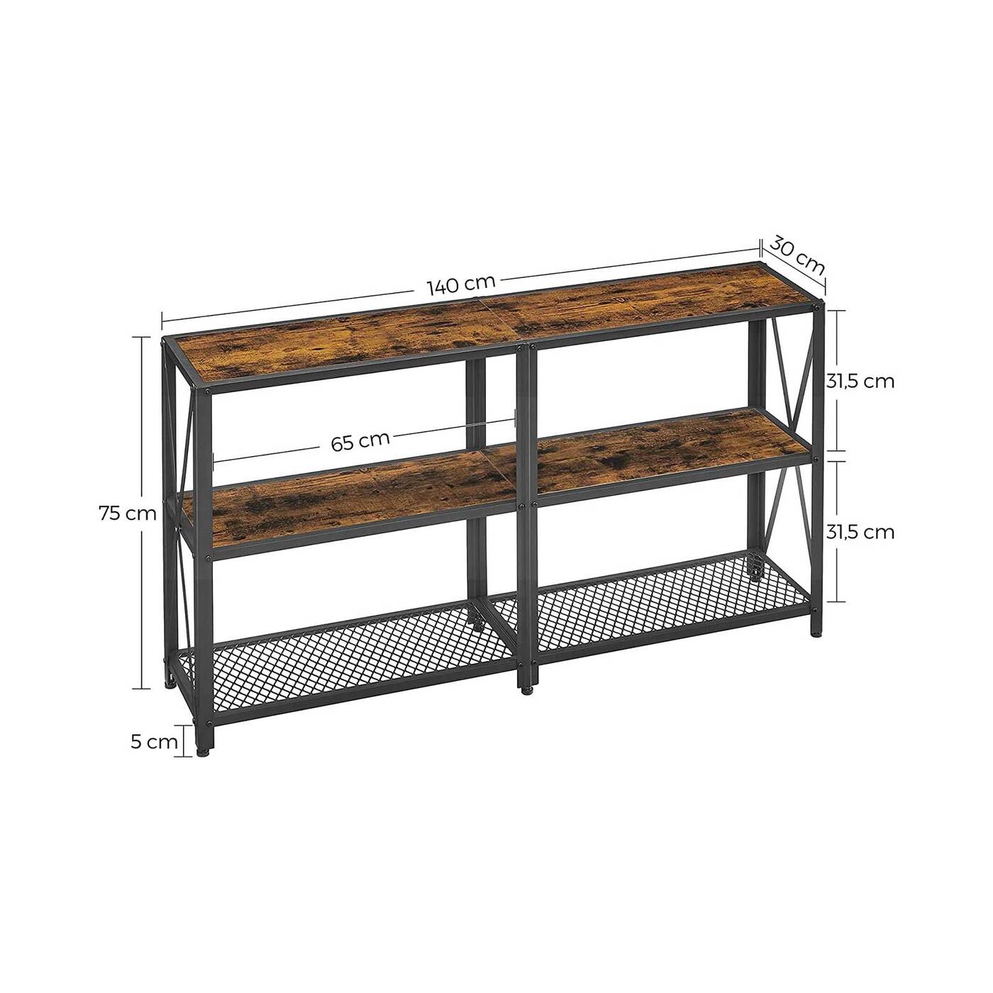 Aprašymas buvo automatiškai išverstas, gali pasitaikyti klaidų.Išsami informacija apie gaminį: - Spalva: vintažinė ruda-juoda - Medžiaga: medžio drožlių plokštės, plienas - Dydis: 140 x 30 x 75 cm (P x P x A) | - Svoris: 15,5 kg - Maksimali medžio drožlių plokštės lentynos statinė apkrova: 80 kg - Maksimali tinklelio lentynos statinė apkrova: 10 kgPristatymo komplektas:- 1 x konsolinis staliukas- 1 x priedų paketas- 1 x instrukcijaVASAGLE Pastabos:- Saugumo sumetimais vaikams draudžiama lipti ant gaminio ar žaisti su juo.