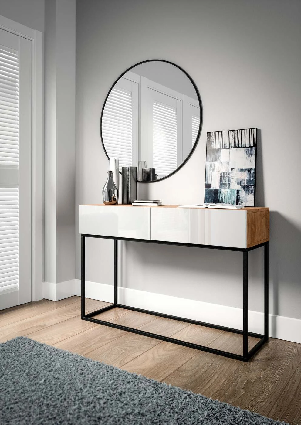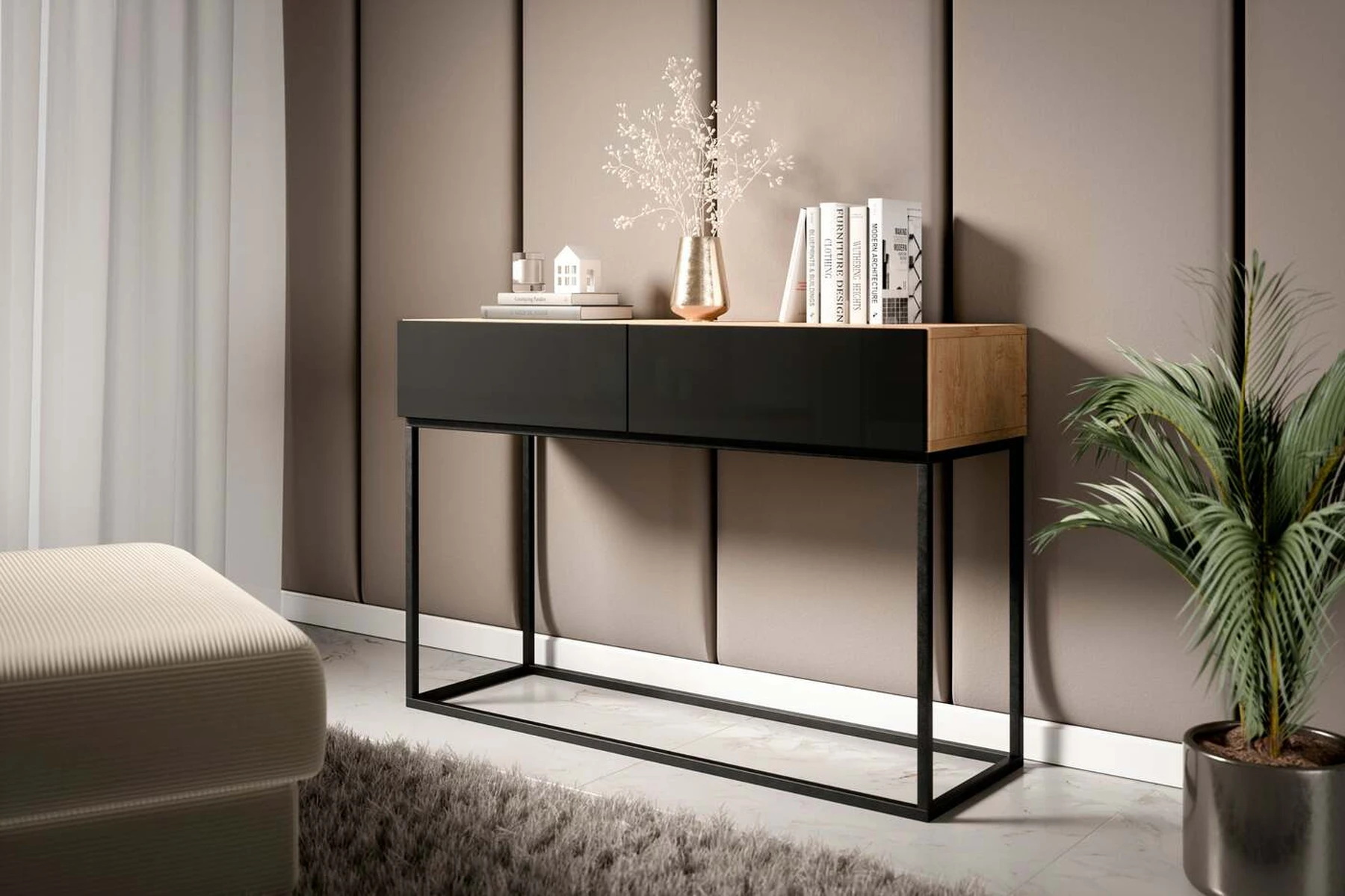 EL2601 kolekcijos konsolė įneša į jūsų namus klasikinį stilių savo švariu siluetu ir nesenstančiomis spalvomis. Šis baldas puikiai papildys šiuolaikinį, modernų ar pereinamąjį dekorą. EL2601 konsolėje yra 2 gilūs stalčiai, pakankamai erdvūs dažnai naudojamiems daiktams tvarkyti. Jame taip pat yra dvigubai daugiau saugojimo vietos, nes lentyna virš stalčių suteikia daug vietos daiktams laikyti, o paviršius sukuria patrauklų ekraną. Stalčiuose naudojama „push-to-open“ funkcija atidarant reikia tik labai lengvai paspausti priekinę dalį, o užsidaro paspaudus priekinę dalį. Tinkamas dydis: 120x40x80 cm, todėl baldas puikiai tiks svetainėje, taip pat darbo kambaryje, miegamajame ar koridoriuje.