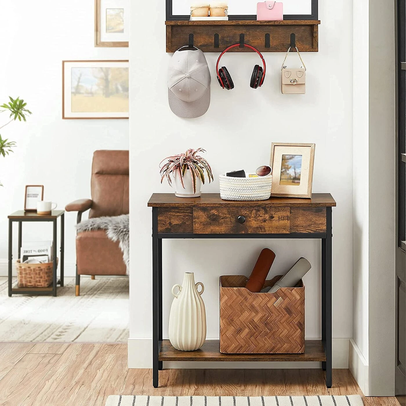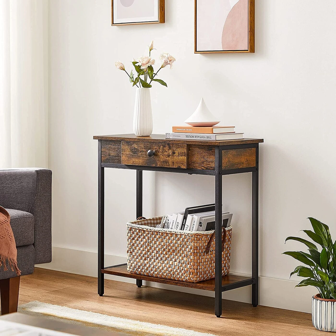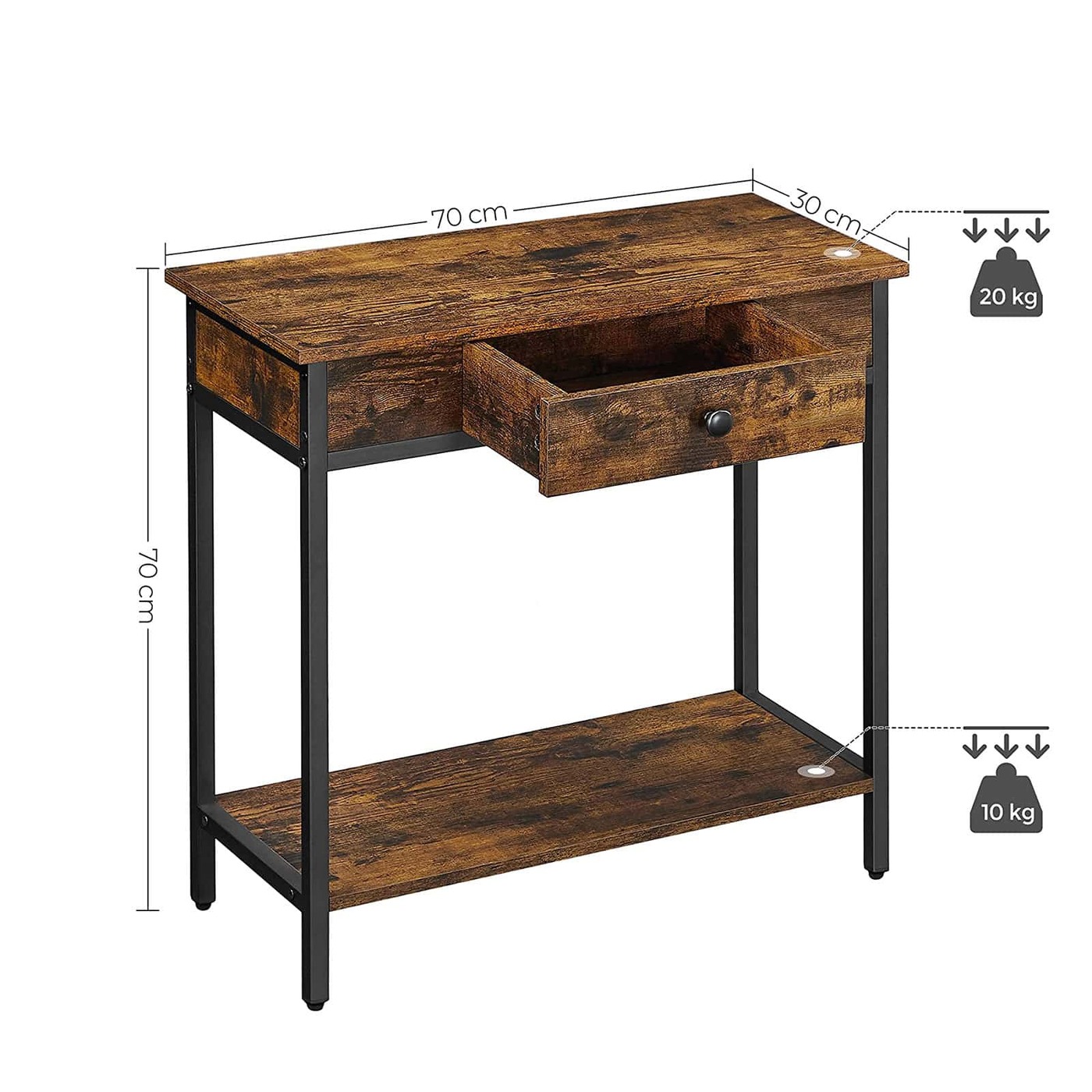 Aprašymas buvo automatiškai išverstas, gali pasitaikyti klaidų.Informacija apie gaminį: - Spalva: vintažinė ruda-juoda - Medžiaga: medžio drožlių plokštės, plienas - Dydis: 70 x 30 x 70 cm (P x P x A) - Svoris: 8,5 kg - Maksimali statinė paviršiaus apkrova: 20 kg - Maksimali apatinės lentynos statinė apkrova: 10 kgPristatymo komplektas:- 1 x šoninė spintelė- 1 x priedų pakuotė- 1 x apsaugos nuo posvyrio įtaisas- 1 x instrukcijaVASAGLE Pastabos:- Saugumo sumetimais vaikams draudžiama lipti ant gaminio ar žaisti su juo.- Pritvirtinkite tai gaminį prie pateikto apsaugos nuo pakrypimo įtaiso prie sienos, kad būtų užtikrintas saugus naudojimas.