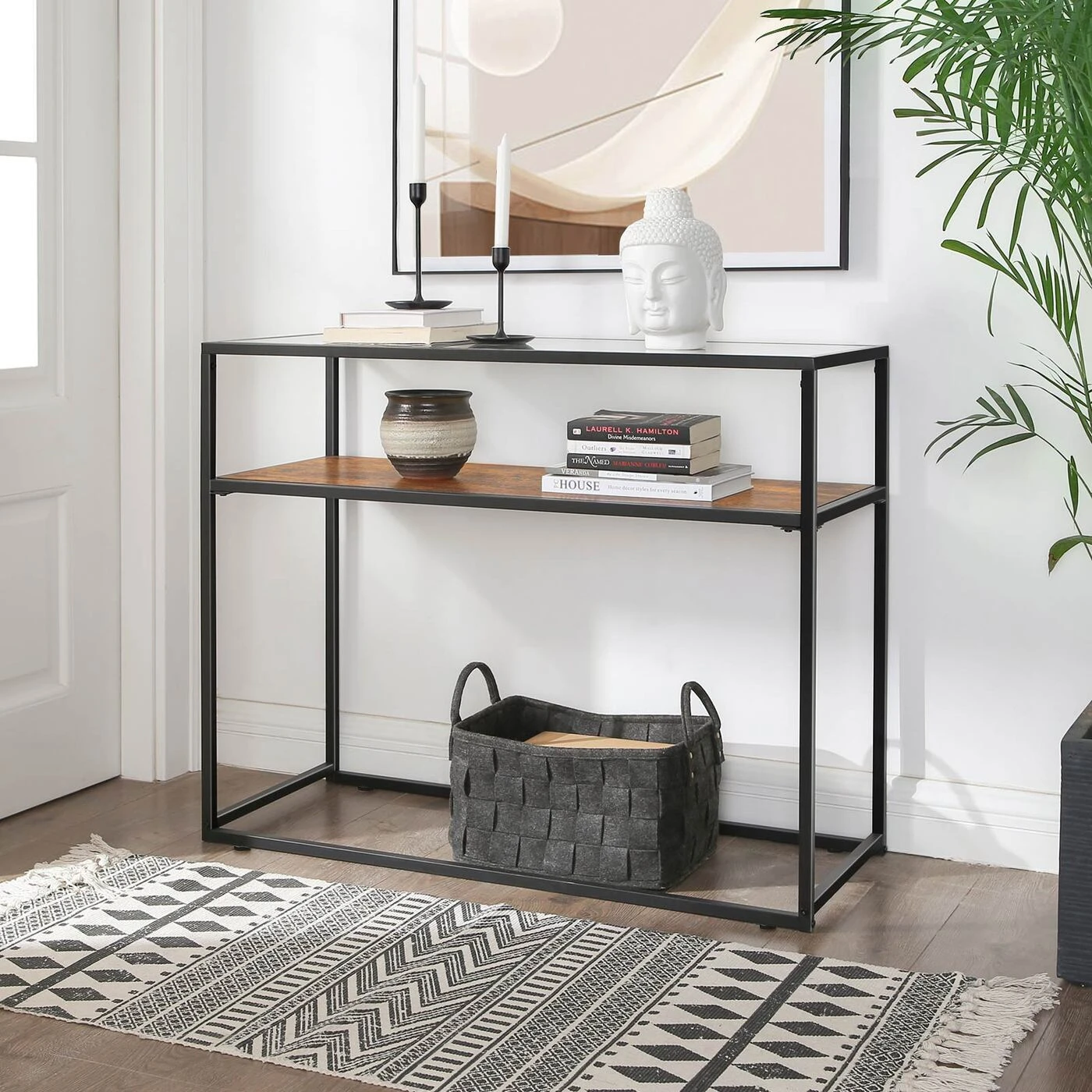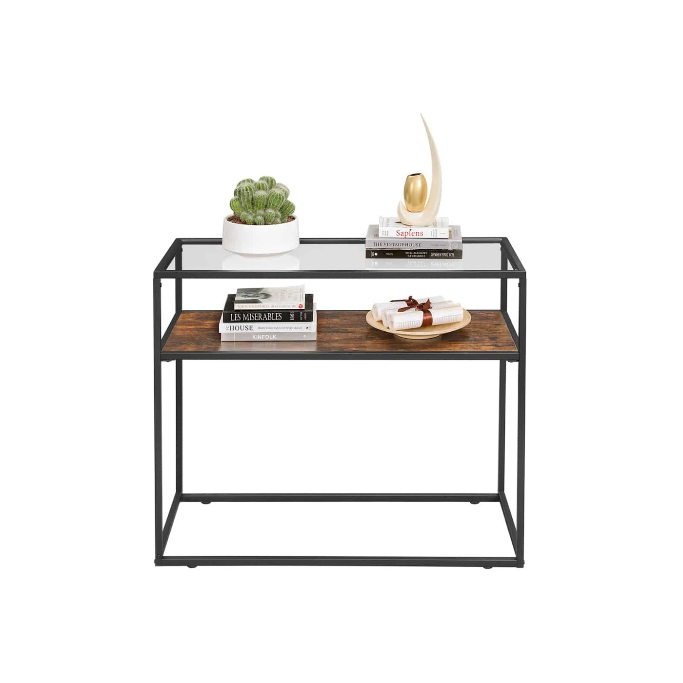 Konsolinis staliukas su stikliniu stalviršiu LNT10BX, rudos/juodos spalvos