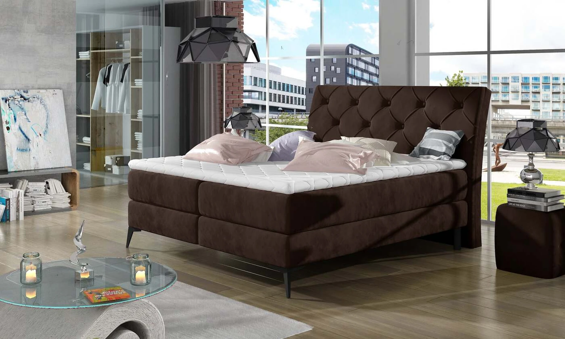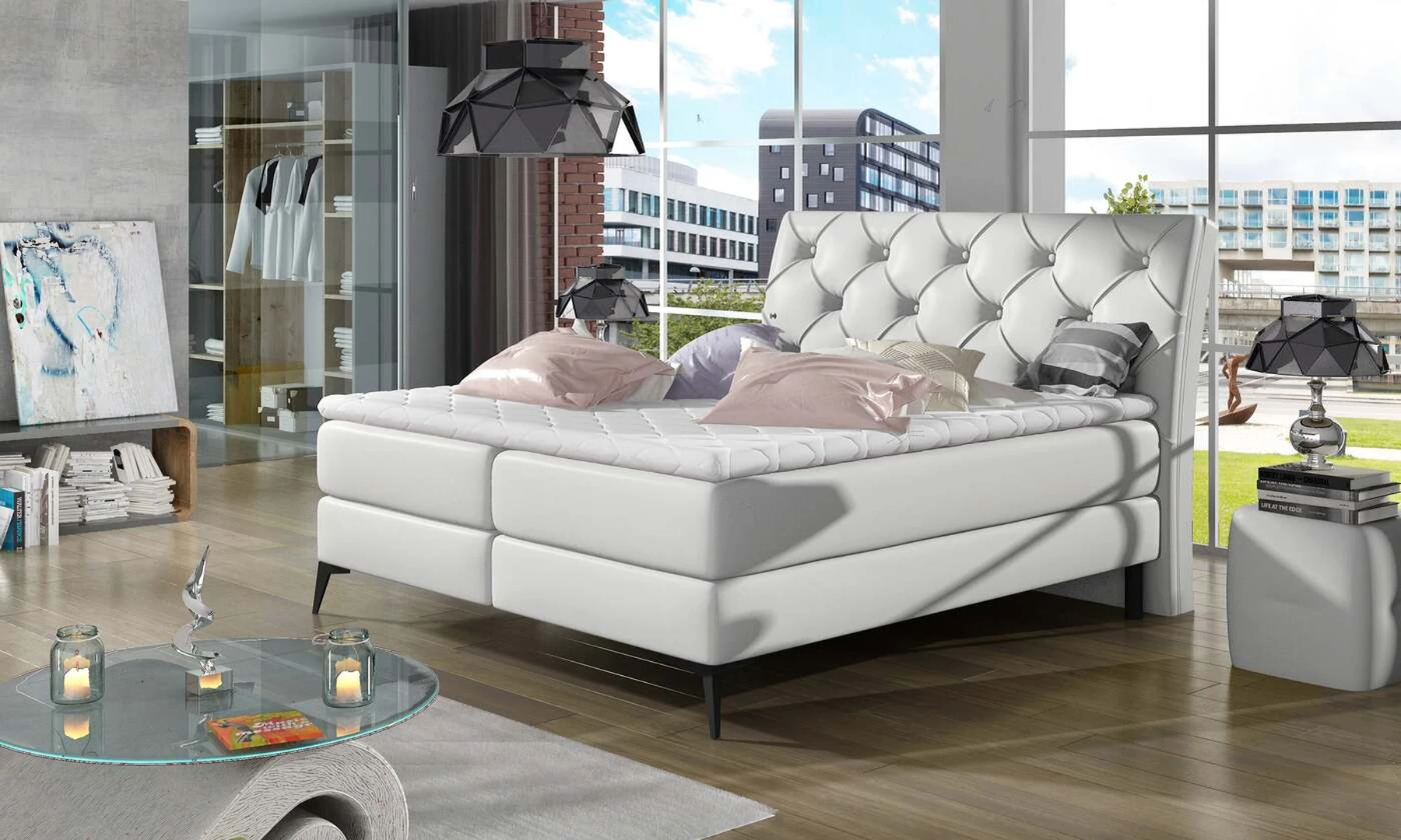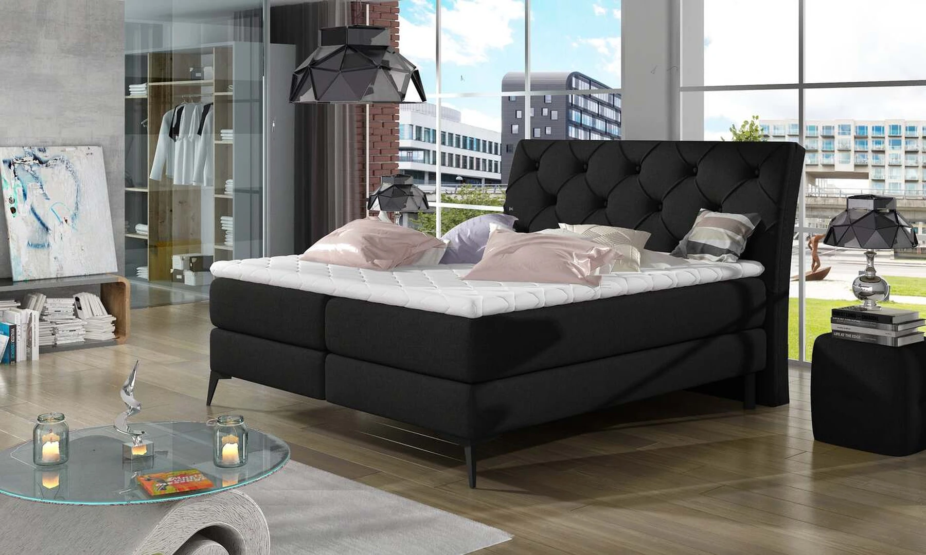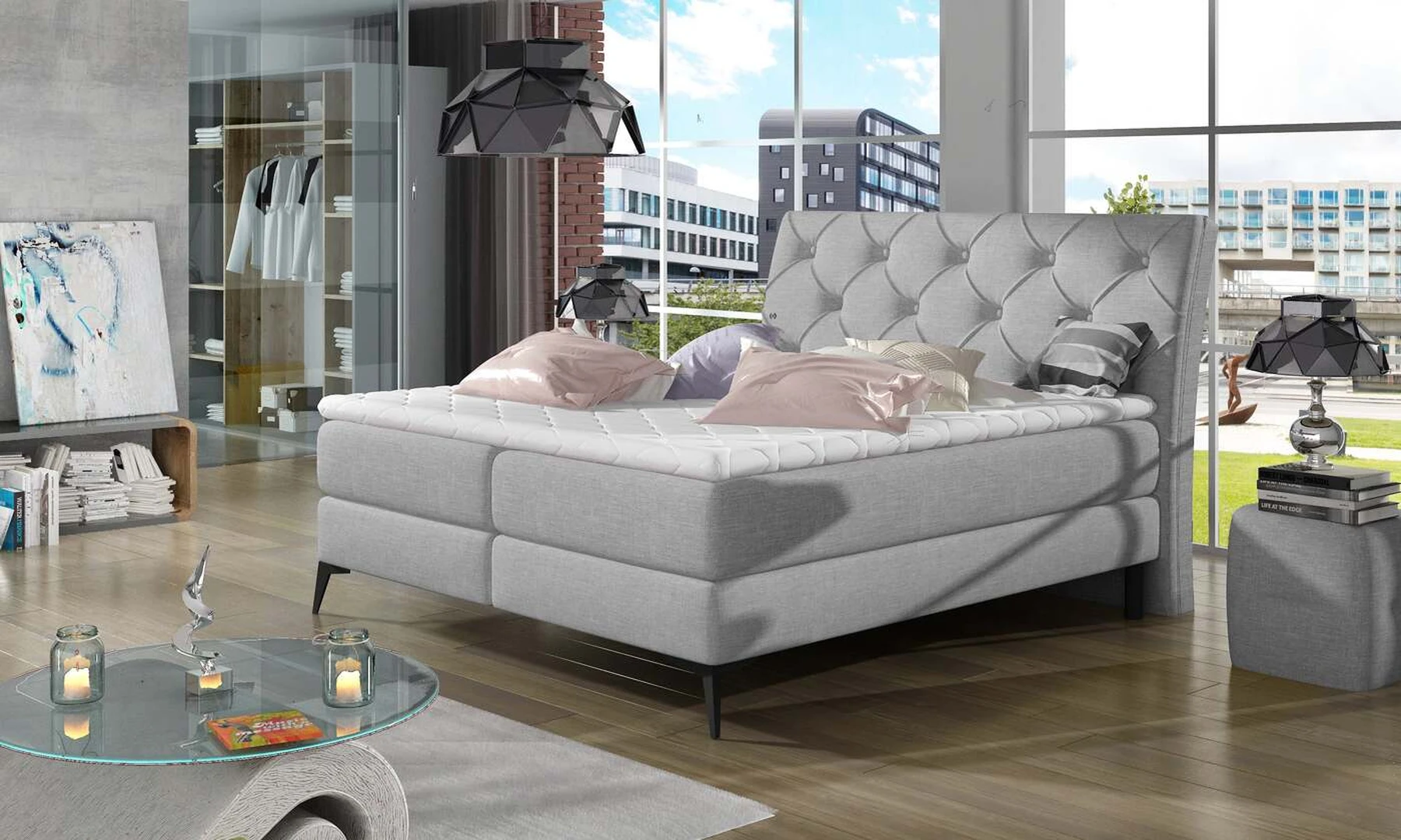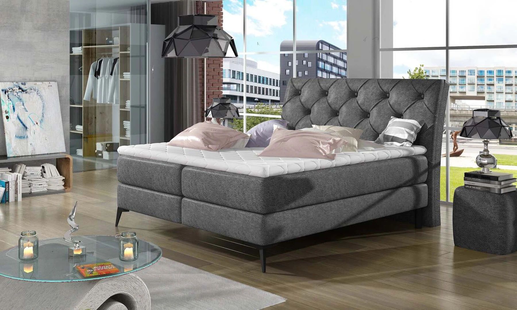 Keliais žodžiais apibūdindami mūsų Boxspring Aderito lovą, galime teigti, kad tai modernumo, elegancijos, gero stiliaus, taip pat maksimalaus komforto ir daug funkcionalumo derinys. Erdvi lova, kurios išmatavimai: 140/ 160/ 180 x 200 cm – puiki vieta miegoti, taip pat ilsėtis bet kuriuo kitu metu. Tarp papildomų šio modelio privalumų galime paminėti tvirtą čiužinį ir tvirtą minkštą rėmą kartu su 2 talpiais patalynės laikymo skyreliais. Aukštam komforto lygiui įtakos turi lovos sėdynės užpildymas kaulinio čiužinio su lanksčiu T25 porolonu ir 4 cm T30 putplasčio antgalio deriniu. Papildomą išskirtinumą taip pat įtakoja originalus lovos dizainas: skoningas minkštas apmušalas, nuožulnus galvūgalis, juodos metalinės 14 cm kojos. Aderito jau savaime yra dizaino meistriškumas, elegancija ir klasė – tokią lovą verta turėti savo miegamajame.