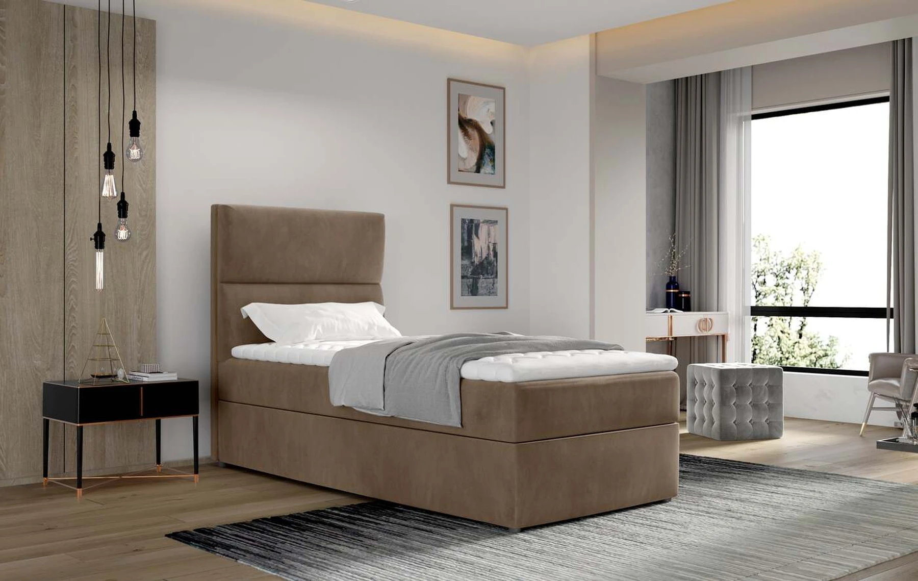 EL2470 yra klasikinio stiliaus viengulė ir labai skoninga lova, kuri puikiai papildys nedidelį miegamąjį ar svečių kambarį. 90 x 200 cm lovos paviršius, taip pat jos užpildymas boneoliu ir porolonu T25 garantuoja ilgą, sotų ir sveiką miegą, kadangi tokio tipo čiužinys palaiko kūną tinkamoje padėtyje tiek naktį, tiek įprastu dienos metu. poilsis. Nepaisant to, kad EL2470 lova atrodo minimalistinė ir kompaktiška, joje įdėtas erdvus patalynės konteineris su medžiagine rankena. Kitos skiriamosios savybės – aukšta 53 centimetrų sėdynė ir 3 centimetrų kojos. Boxspring EL2470 yra idealus pasirinkimas bet kokio dydžio kambariui, nes jis tiesiog tilps bet kur, o dėl savo dydžio tai yra mini versija, suteikianti maksimalų komfortą, kurį galite turėti.