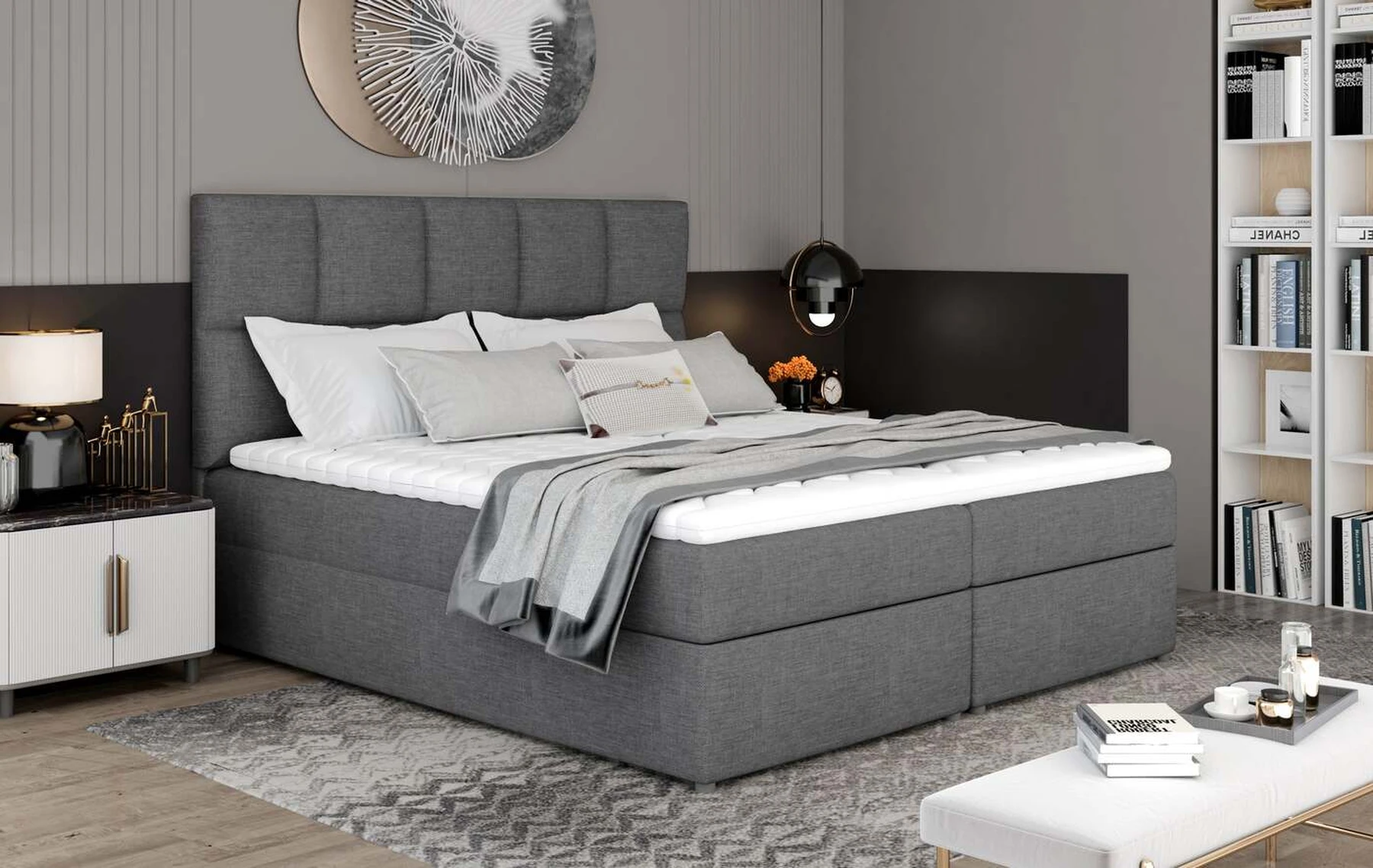 EL4787 yra išskirtinė, skoninga erdvi ir tinkamos formos spyruoklinė kontinentinė lova, skirta aukštesnio nei vidutiniško komforto gurmanams dieną ir naktį. Patogų ir visavertį miegą ant lovos EL4787 garantuoja 15 cm aukščio bonell čiužinio ir 4 cm aukščio čiužinio derinys. Toks derinys užtikrina sveiką miegą, taip pat tinkamą stuburo išsidėstymą. teisinga padėtis. EL4787 yra funkcionali lova dėl, be kita ko, dviejų erdvių konteinerių patalynei, taip pat didelės erdvės poilsiui – ji yra trijų dydžių: 145/165/185 x 200 cm. Papildomos šio modelio savybės yra aukšta sėdynė, 3 centimetrų kojos ir originalus EL4787 dizainas. Paprasta aukšto galvūgalio forma praturtinta languotomis siūlėmis, kurios visai struktūrai suteikia nepakartojamo žavesio. EL4787 yra lova, kuri džiugina ir džiugina. Verta turėti jį savo miegamajame.
