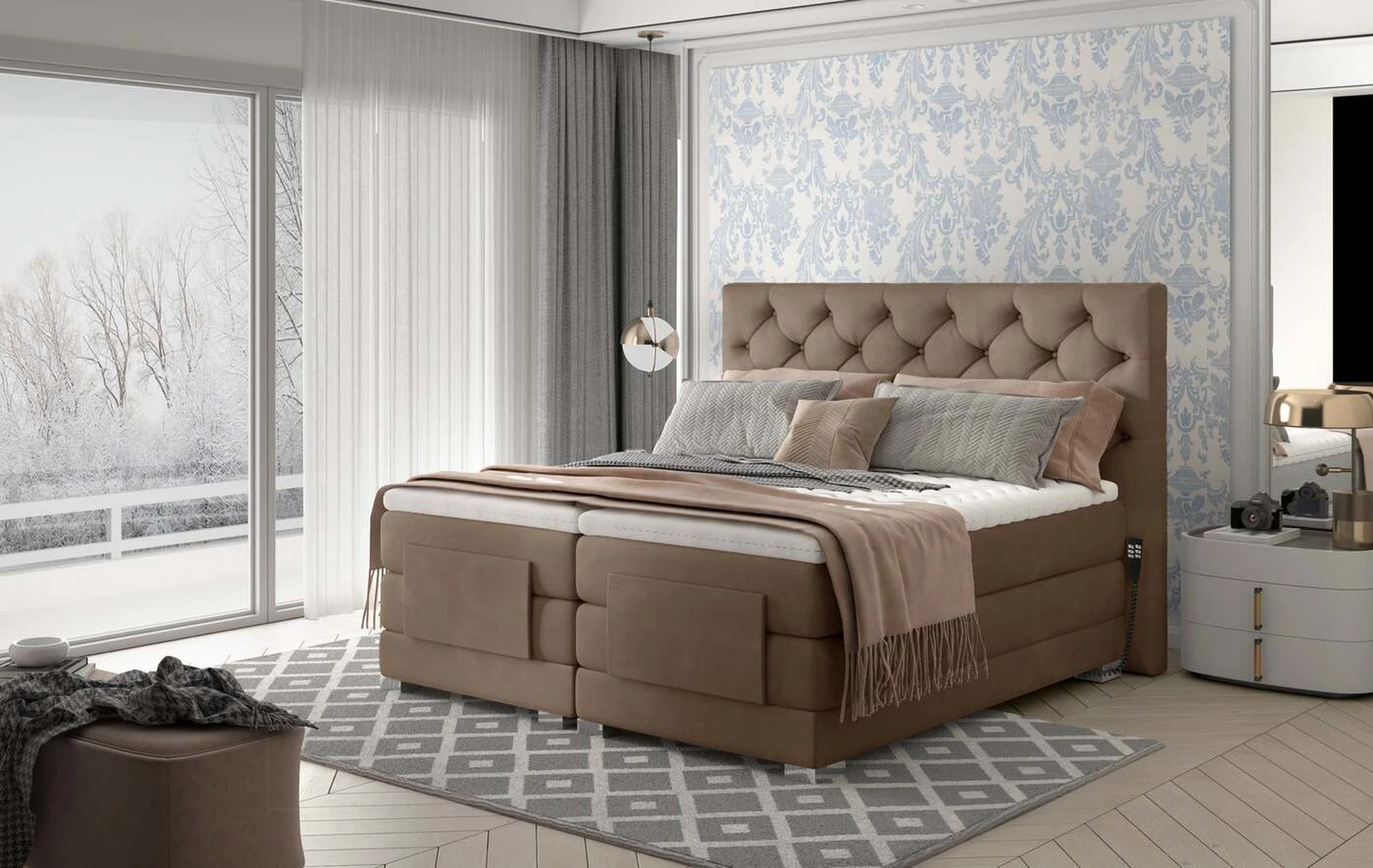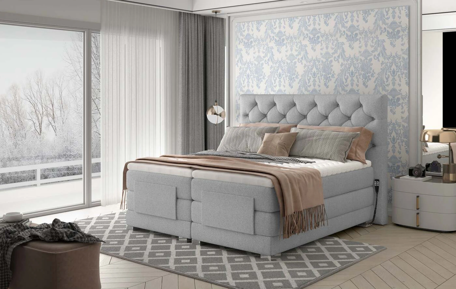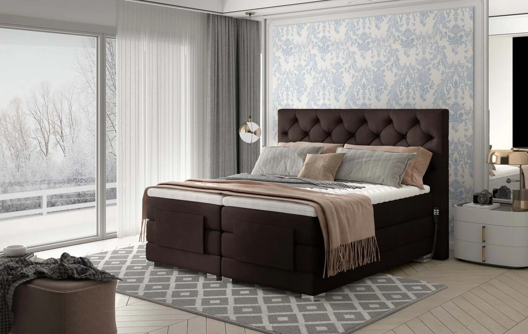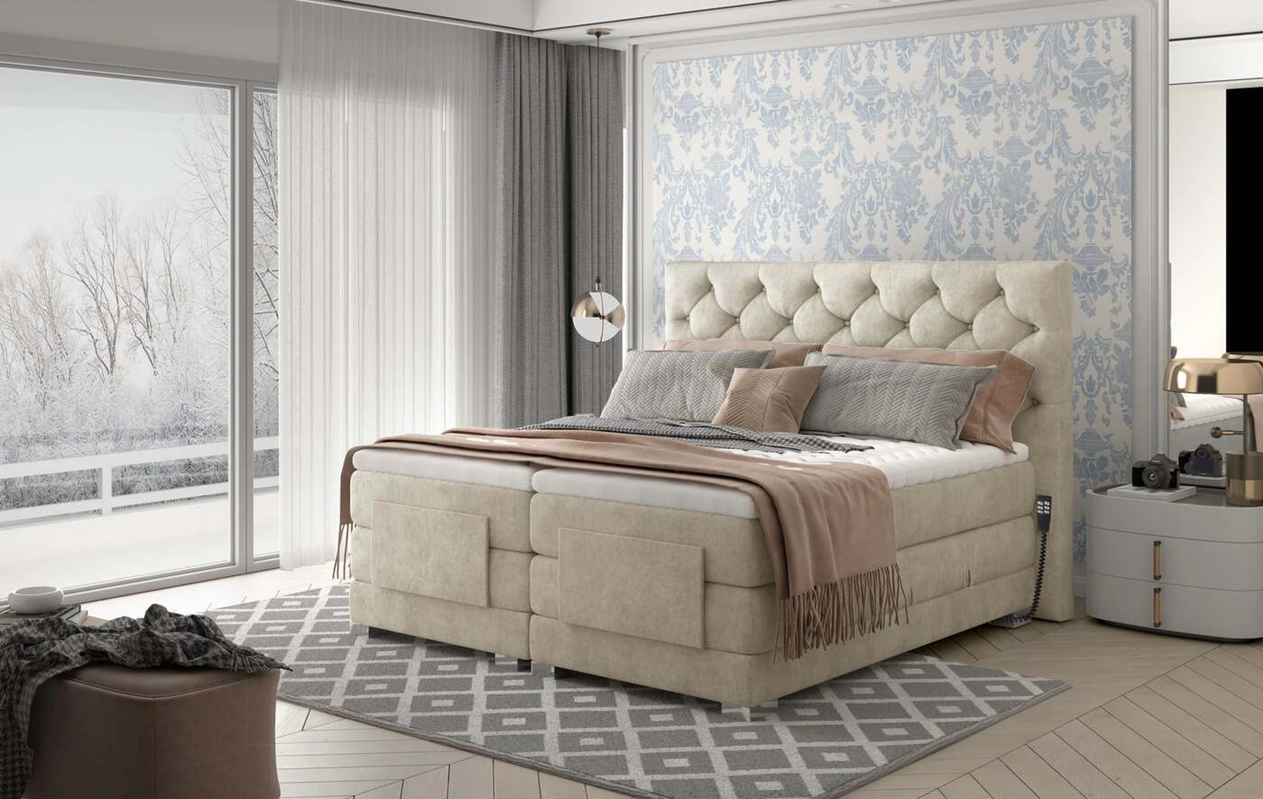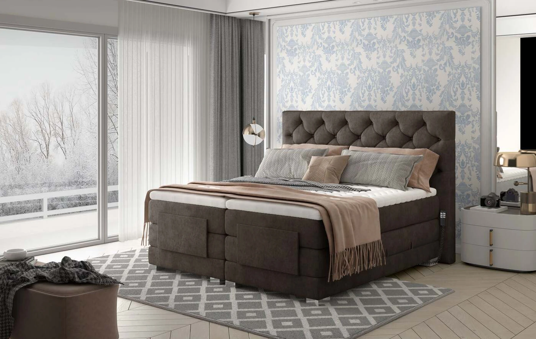 EL6887 yra 100% atsakymas į dabartinius reikalavimus siekiant maksimalaus komforto. Šis modelis dėl savo elektrinio valdymo prisitaiko prie individualių vartotojo pageidavimų, todėl jis gali pasirinkti, pavyzdžiui, sau optimaliausią čiužinio aukštį. Visa tai 2 nuotolinio valdymo pulteliais, kurie yra iš abiejų lovos pusių. Boxspring EL6887 komplektuojamas su trimis atskirais čiužiniais, kurie sukuria erdvų miegamojo paviršių nepriklausomai nuo lovos dydžio, taip pat antklodė. Galima rinktis iš keturių paviršių: 90/ 140/ 160/ 180 x 200 cm. Kitos mūsų EL6887 kontinentinės lovos savybės: patvarus rėmas, visiškai apmuštas apmušalų audiniu, stilingas dygsniuotas atlošas ir elegantiškos chromuotos kojos. Platus spalvų pasirinkimas leidžia priderinti baldus prie miegamojo interjero ir savo estetinių pageidavimų. Boxspring EL6887, be jokios abejonės, yra unikali lova, kuri džiugina, o savo neprilygstamo funkcionalumo dėka tikrai atlaikys ne tik užduotį, bet ir individualius lūkesčius.