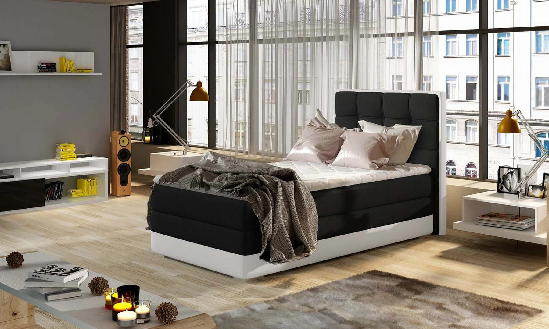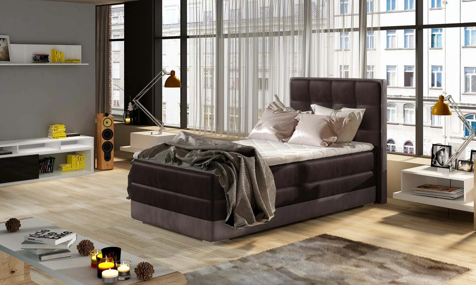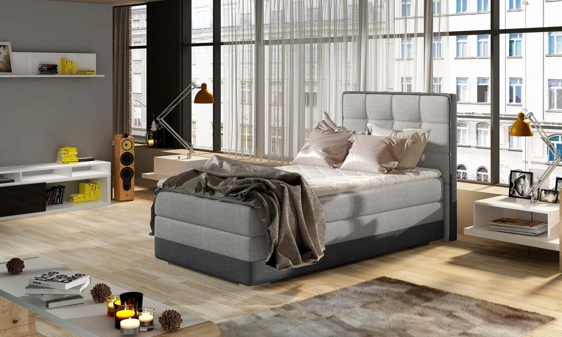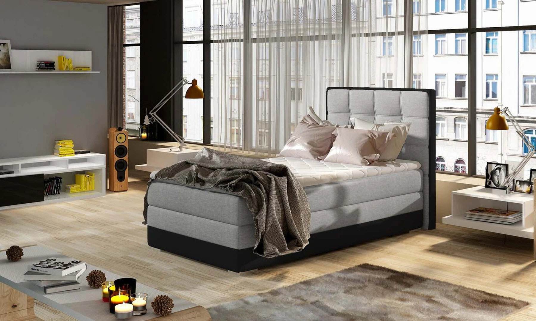 EL7308 yra funkcionali, viengulė ir originalaus dizaino spyruoklinė kontinentinė lova, kurios miegamasis paviršius yra 90 x 200 cm. Užpildas yra 20 cm aukščio bonell čiužinys, kuriame yra du papildomi T25 porolono sluoksniai - viršutinis ir apatinis. Prie išskirtinių šio modelio bruožų galime išskirti: puošnų galvūgalį, aukštą 60 centimetrų sėdynę ir daugybę galimų spalvų variacijų. EL7308 taip pat turi erdvų patalynės konteinerį, kurį galima atidaryti iš abiejų pusių.