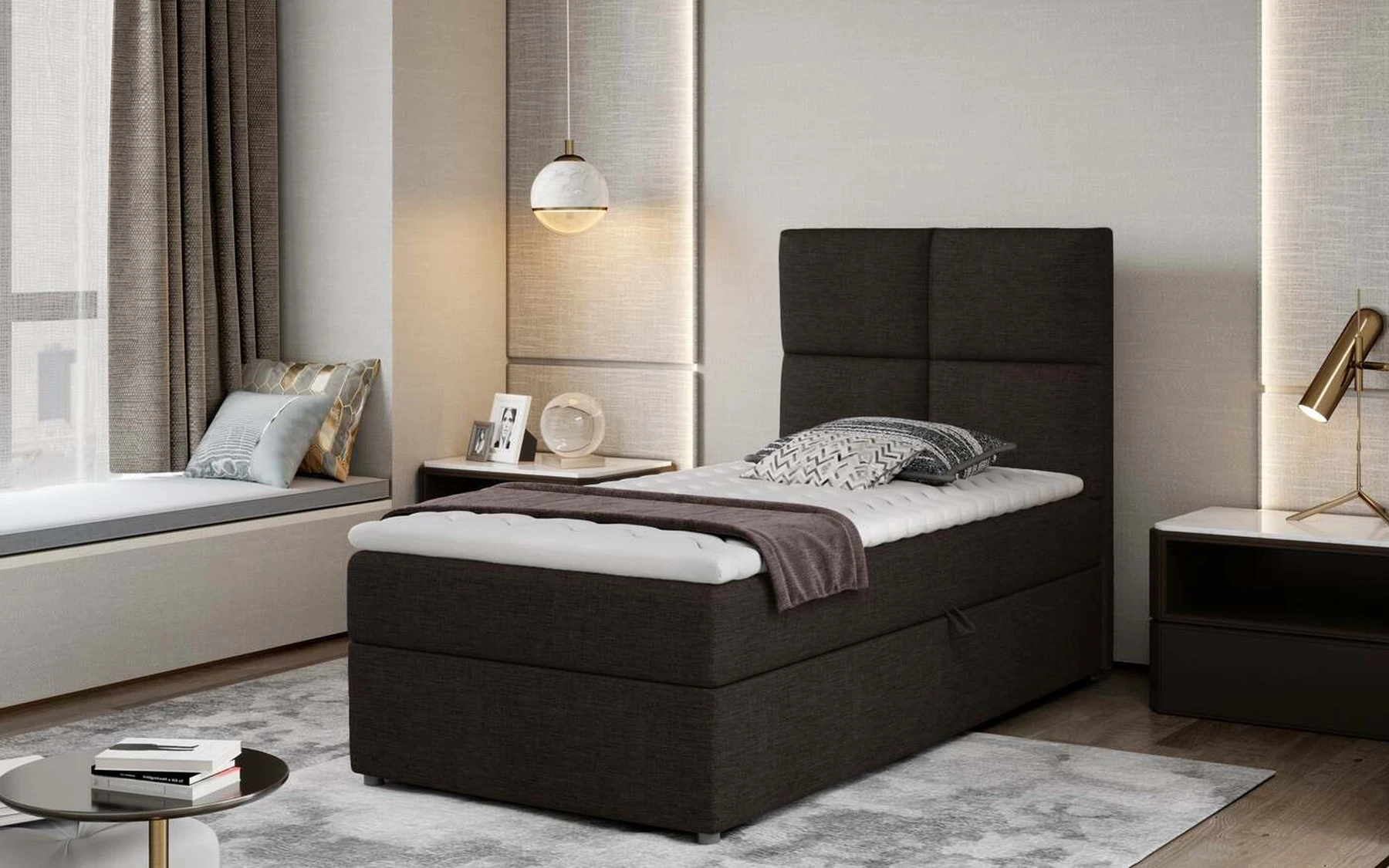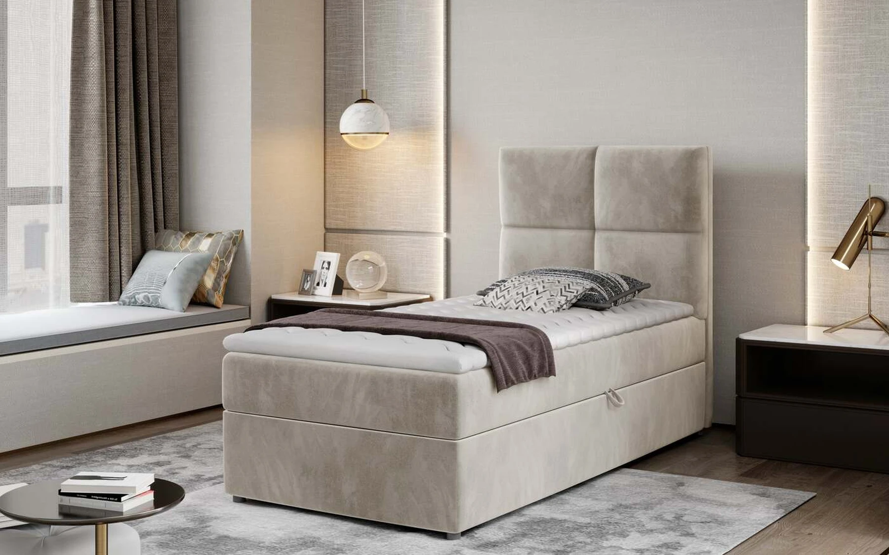 EL9601 yra klasikinio stiliaus viengulė ir labai skoninga lova, kuri bus idealus baldas bet kokio tipo miegamajame - ar jūsų vaiko kambaryje, ar kambaryje, paruoštame svečiams - EL9601 visada yra hitas. Lovos 90 x 200 cm paviršius, taip pat jos užpildymas boneoliu ir T25 porolonu garantuoja sveiką miegą, kadangi tokio tipo čiužinys ilsintis palaiko kūną tinkamoje padėtyje. Nepaisant to, kad Arco lova atrodo minimalistinė ir kompaktiška, joje įdėtas erdvus patalynės konteineris su medžiagine rankena. Kitos skiriamosios savybės – aukšta 53 centimetrų sėdynė ir 3 centimetrų kojos. Boxspring EL9601 yra idealus pasirinkimas, jei ieškote tobulo viengulės savo miegamajame. EL9601 yra mažesnio dydžio ir maksimalaus komforto sinonimas.