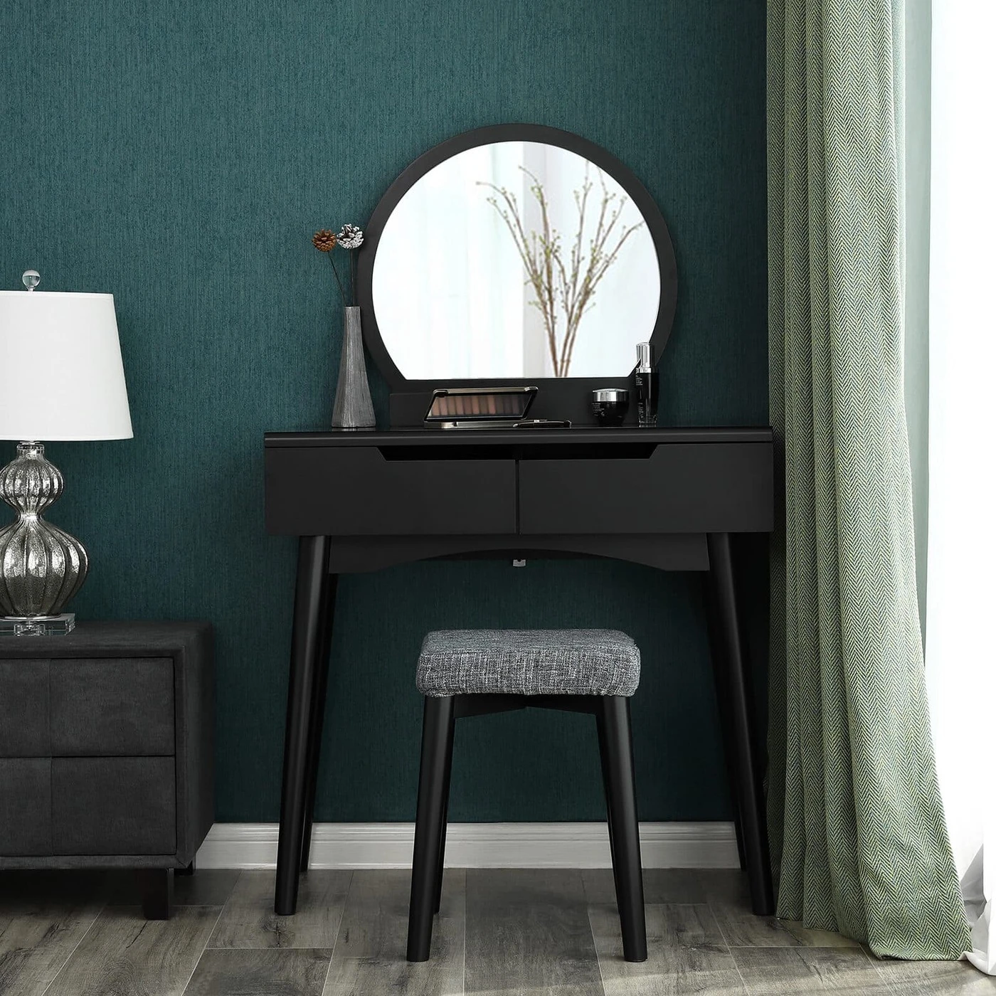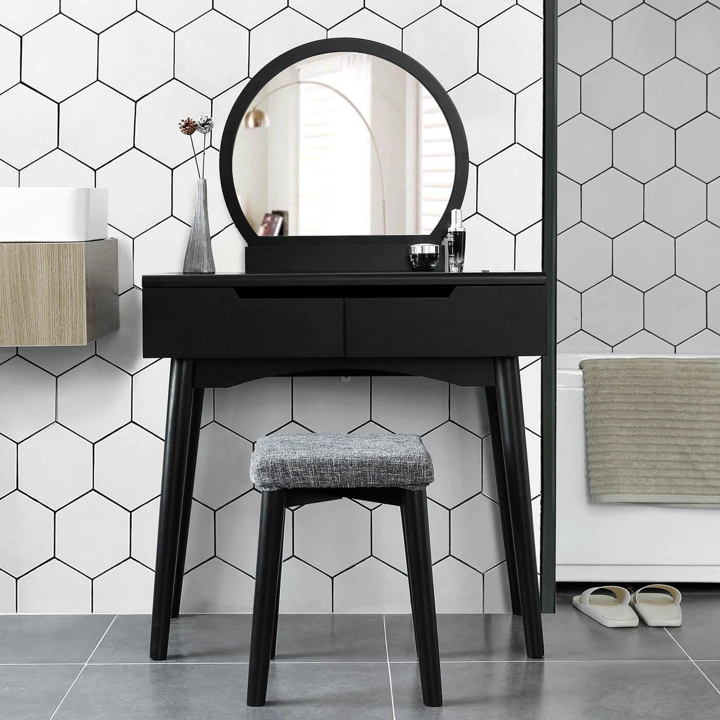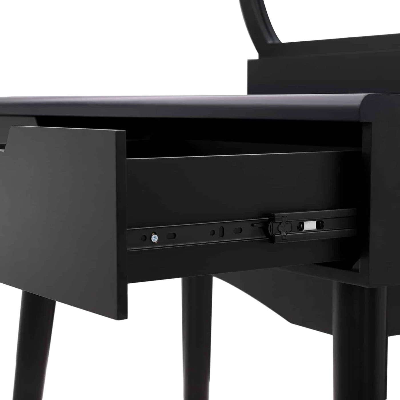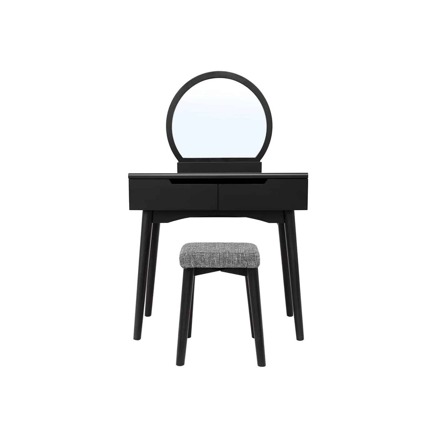 Aprašymas buvo automatiškai išverstas, gali pasitaikyti klaidų.Informacija apie gaminį: Spalva: juoda Medžiaga: MDF plokštė, pušis, guma Matmenys: 80 x 128 x 40 cm (tualetinis staliukas) 32,5 x 45,5 x 32,5 cm (taburetė) Svoris: 20,1 kg Pristatymo komplektas: 1 x tualetinis staliukas 1 x veidrodis 1 x taburetė 1 x instrukcijos (DE, EN, IT, FR, ES)