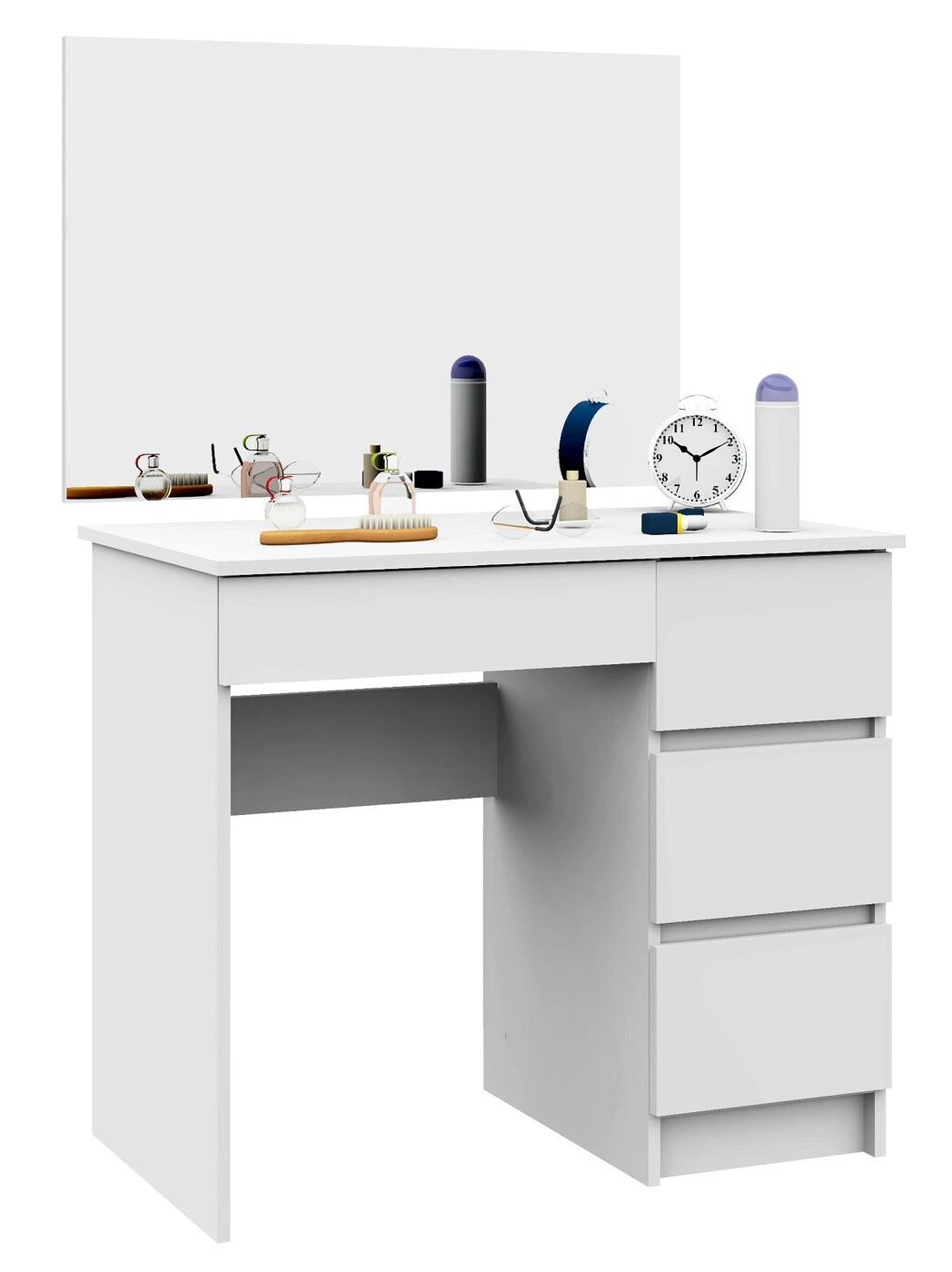 Aprašymas buvo automatiškai išverstas, gali pasitaikyti klaidų. Sujunkite estetiką ir praktiškumą viename balde! Tualetinis staliukas – tai konsolės su stalčiais ir didelio veidrodžio derinys. Balta konsolė su 4 stalčiais yra mūsų gaminio pagrindas. Stalčiuose tilps daugybė šepetėlių, lūpų dažų, makiažo pagrindų ir kitų dalykų, kurių kiekvienai moteriai reikia kasdieniame gyvenime. Kaip gamintojas, siūlome produktą už neprilygstamą kainą, todėl jis yra nepaprastai patrauklus. Modernus stilius patiks ir jaunai merginai, ir vidutinio amžiaus moteriai. Kosmetinis tualetinis staliukas su veidrodžiu – tobulas makiažas. Tualetinis staliukas turi funkcionalų viršų, ant kurio susidėsite būtiniausius daiktus, bei keturis erdvius stalčius, kuriuose tilps visos smulkmenos. Komplekte su atitinkamo dydžio veidrodžiu, tualetinis staliukas sukuria puikias sąlygas makiažui pasidaryti, o kasdienė moteriška rutina nuo šiol bus daug malonesnė. Tinkami tualetinio staliuko išmatavimai (77 cm aukštis, 90 cm plotis, 50 cm gylis) užtikrina patogų tualetinio staliuko judėjimą ir naudojimą. Erdvus veidrodis (60 cm x 90 cm) leis tiksliai atlikti net sudėtingiausias priežiūros procedūras. Šis rinkinys veiks net mažoje erdvėje. Tualetinis staliukas pagamintas iš patvarios, trinčiai ir pažeidimams atsparios laminuotos plokštės, o dėl neutralios, madingos baltos spalvos jis tiks bet kokiame interjere. Puikus baldas miegamajam ar kitam kambariui, kuris patiks kiekvienai grožiui neabejingai moteriai.