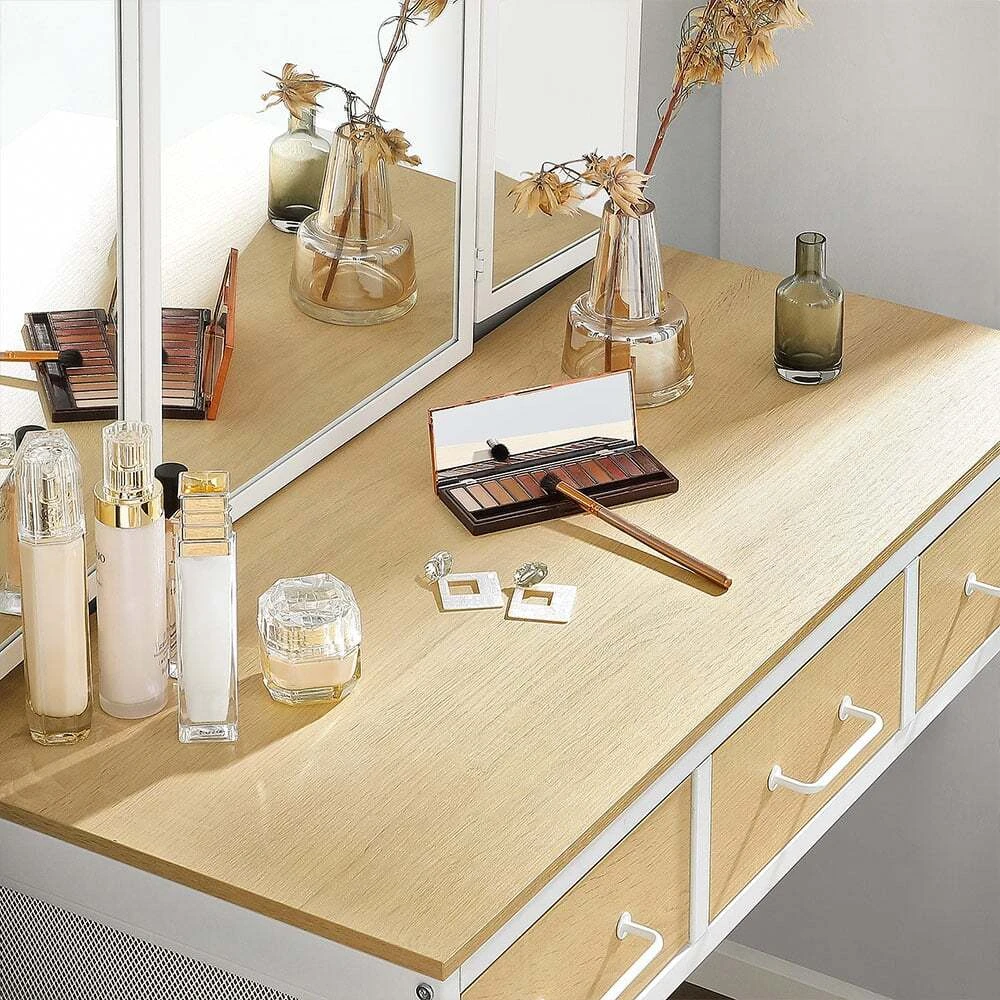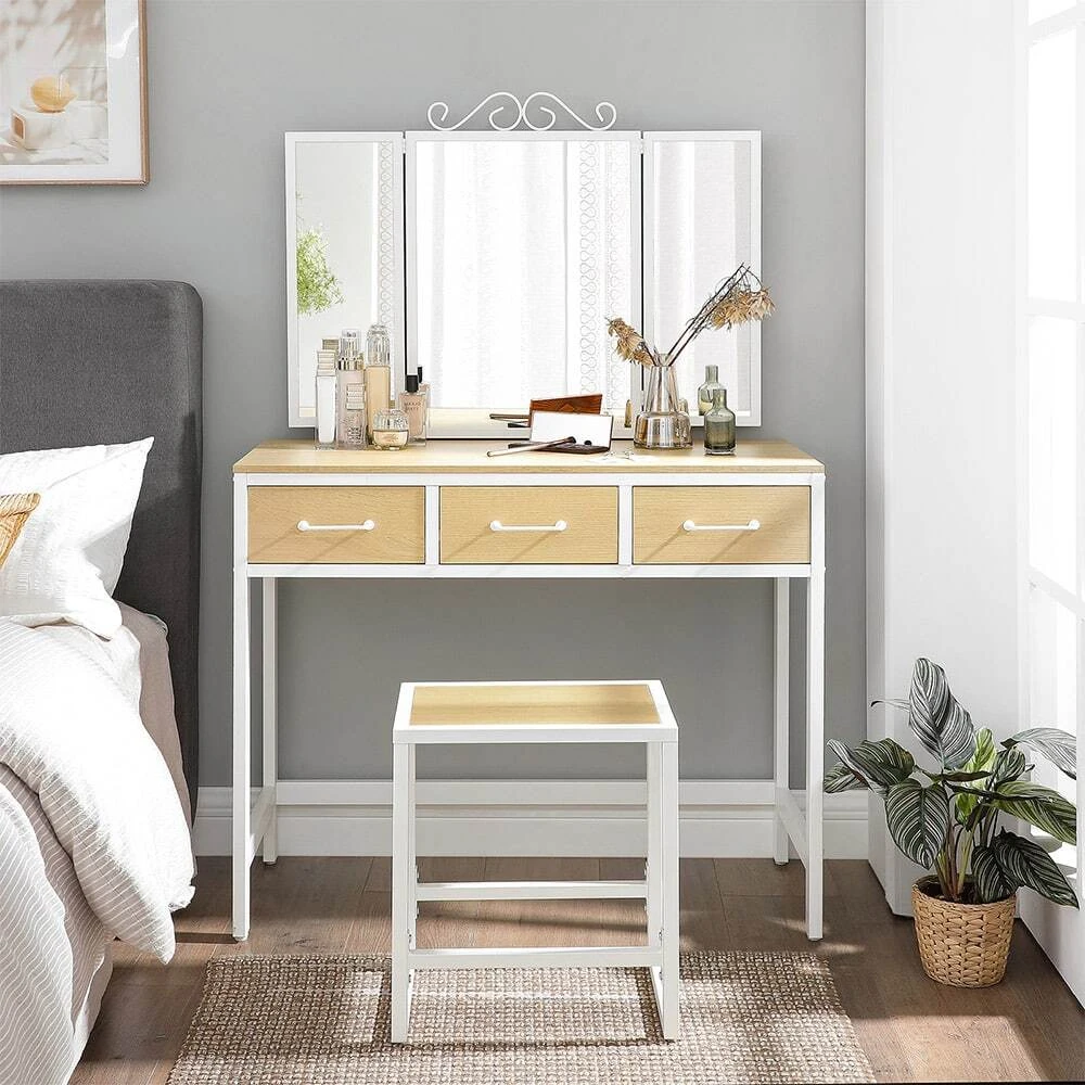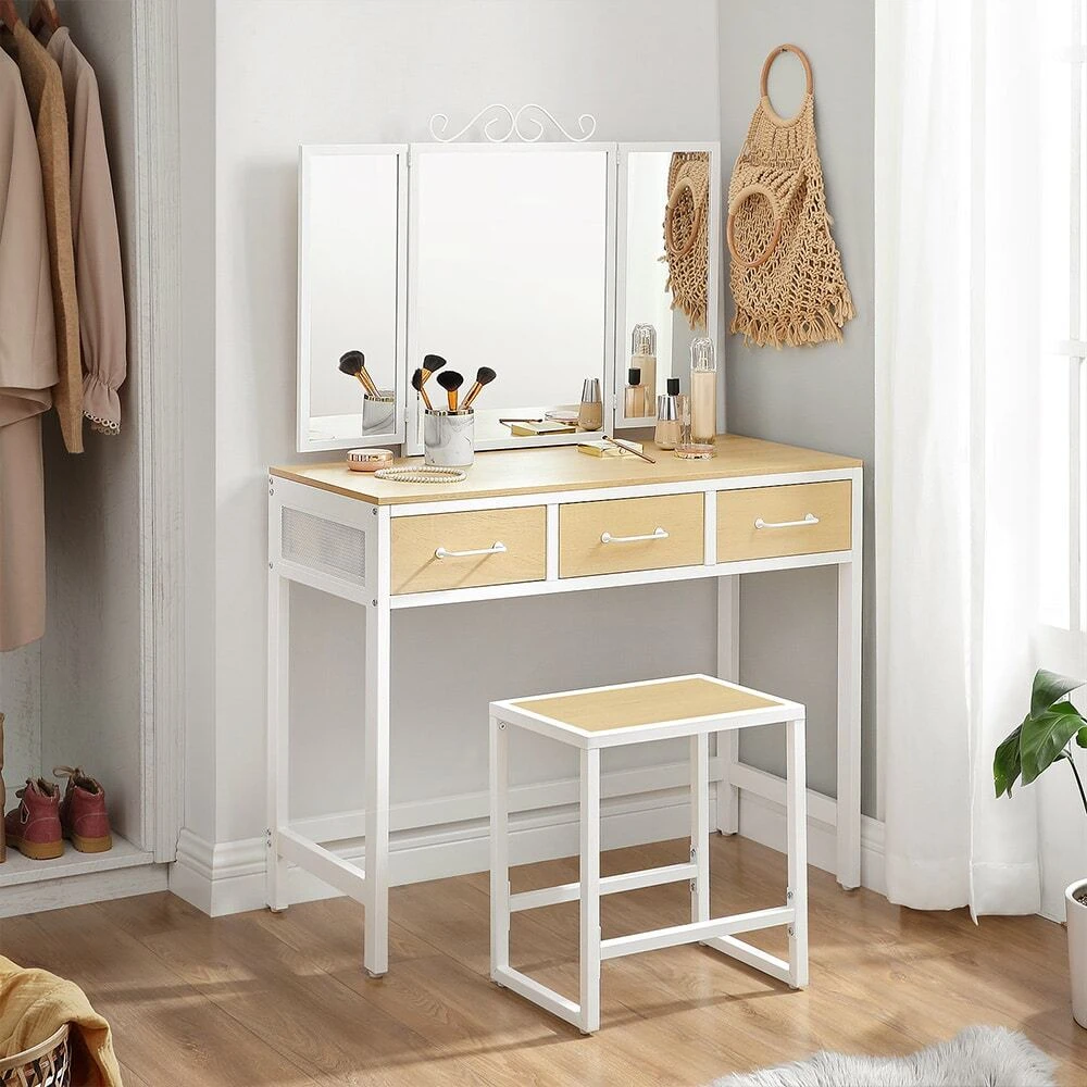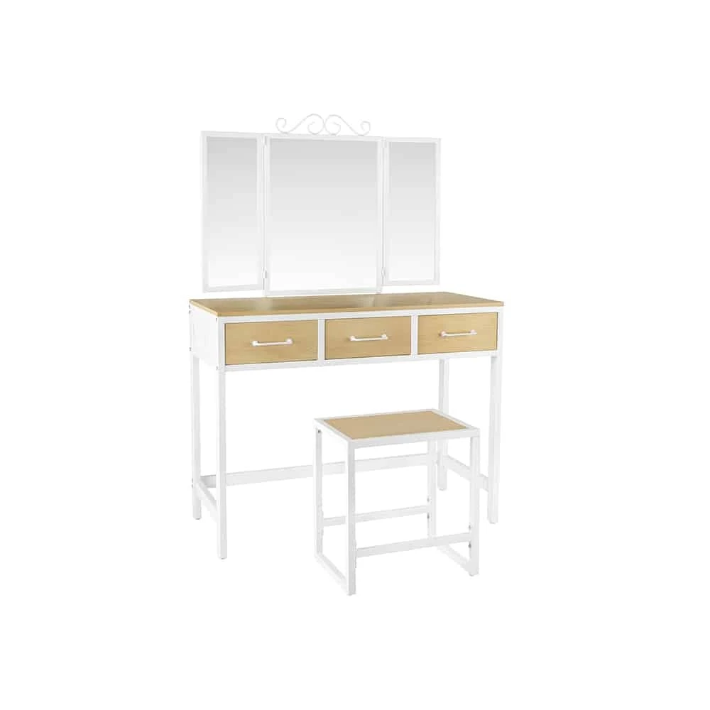 Aprašymas buvo automatiškai išverstas, gali pasitaikyti klaidų.Išsami informacija apie gaminį: - Spalva: natūrali balta - Medžiaga: medžio drožlių plokštė, plienas, stiklas - Tualeto staliuko dydis: 90 x 40 x 137,5 cm (P x P x A) - Aukštos kėdės dydis: 38 x 28 x 43 cm ( Ilgis x P x A) – Svoris: 24,5 kgPristatymo apimtis: - 1 x tualetinis staliukas - 1 x taburetė - 1 x priedų paketas - 1 x vadovas (DE, EN, FR, ES, IT) VASAGLE Pastabos: - Saugumo sumetimais vaikams draudžiama lipti ant gaminio arba žaisti su juo.