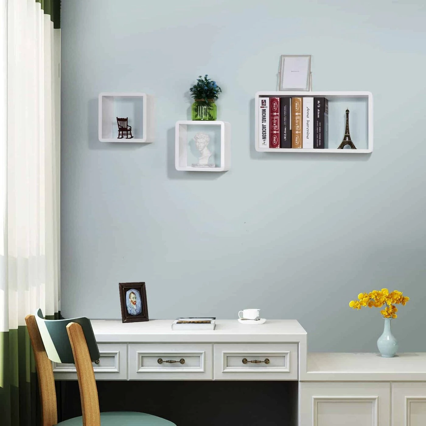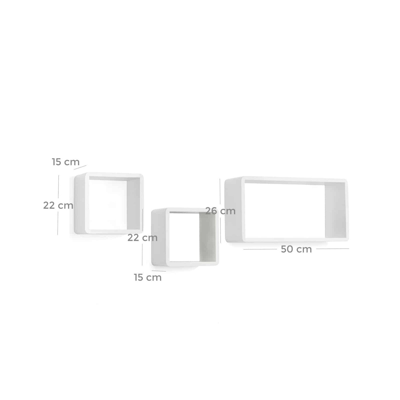Aprašymas buvo automatiškai išverstas, gali pasitaikyti klaidų.Produkto aprašymas: Lanksčių lentynų rinkinys3 lentynos - 1 x stačiakampis ir 2 x kvadratas - gali būti kabinamos kartu kaip sieninė lentyna arba atskirai skirtingose patalpose. Nugarėlėje yra metalinių kabliukų skylių, kuriose galima pakabinti varžtus (pridedama), todėl atrodo, kad jis plūduriuoja. Tvirta dėl MDF medienos ir PU dangos su 15 mm storio sienelėmis, knygų spinta puikiai tinka ypatingoms dekoracijoms. Naudokite lentyną knygoms, dekoracijoms, vazoms, kompaktiniams diskams, DVD ir dar daugiau.Daugiau dydžio, kad gautumėte daugiau turinio. Mūsų naujasis lentynų rinkinys yra 15 cm gylio, didesnis nei jo pirmtakas. Dėl to jis puikiai tinka knygoms, DVD diskams ir dekoracijoms, kurioms tiesiog reikia daugiau gylio. Namuose ar biure augalai, gėlės ir nuotraukų rėmeliai gali būti gražiai apklijuoti ir suteikti kambariui atmosferos. Nekenksmingas aplinkai ir saugusDėl dangos kubeliai yra atsparūs vandeniui ir drėgmei, taip pat lengvai valomi. Naudojant specialų tvirtinimo būdą (sraigtai ir kaiščiai įtraukti į pristatymo komplektą), lentynų tvirtinimas yra lengvas ir saugus.Informacija apie gaminį: - Spalva: balta - Medžiaga: 1,5 cm storio MDF plokštė su PU danga - Mažos lentynos matmenys: 22 x 22 x 15 cm (P x A x G), - Didžiosios lentynos matmenys: 50 x 26 x 15 cm (P x A x G) - kiekvienos lentynos apkrova: 15 kg - bruto svoris: 6 kg - neto svoris: 5,2 kg Pristatymo komplektas: - 1 x sieninių lentynų komplektas (1 x didelė lentyna, 2 x mažos lentynos) - varžtai ir kaiščiai - 1 x Instrukcija (DE, FR, EN, IT, ES)SONGMICS Pastaba:- Surinkimui reikalingas akumuliatorinis atsuktuvas, gulsčiukas ir plaktukas.