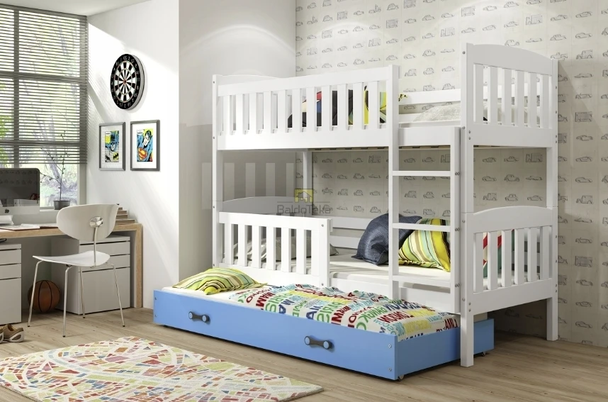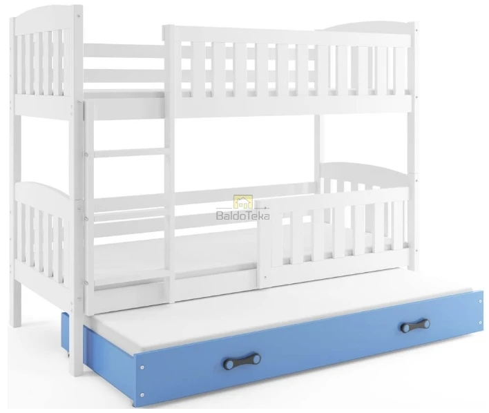 Su poliuretano čiužiniais, patalynės dėže ir apsaugine tvorele.