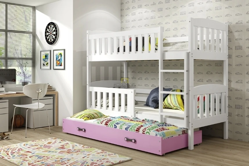 Su poliuretano čiužiniais, patalynės dėže ir apsaugine tvorele.
