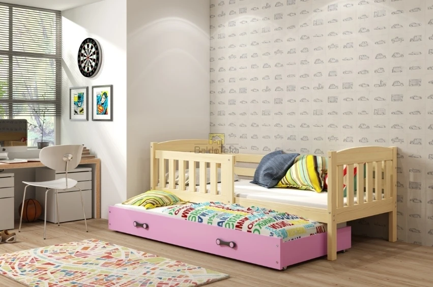 Su poliuretaniniais čiužiniais ir apsaugine tvorele.