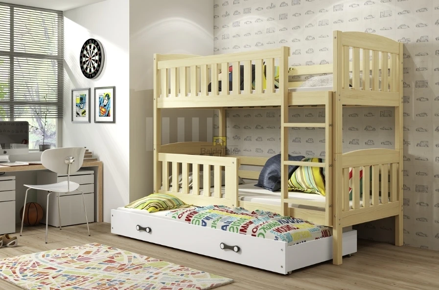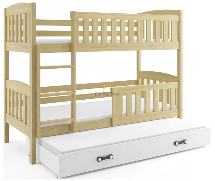 Su poliuretano čiužiniais, patalynės dėže ir apsaugine tvorele.