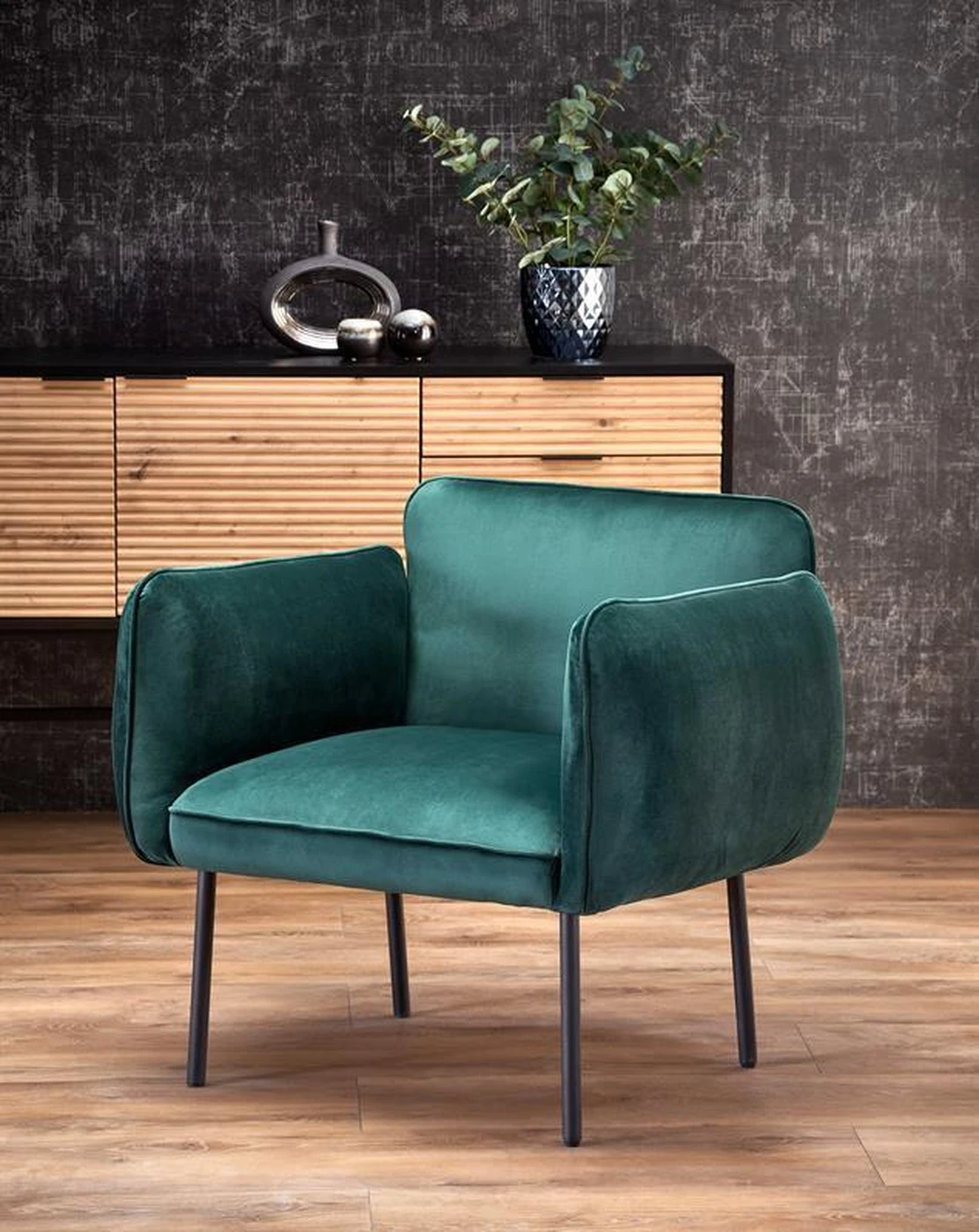matmenys: 91/72/78/44 cm, medžiaga: aksominis audinys / milteliniu būdu dažytas plienas, spalvos: apmušalai - tamsiai žalia, kojos - juodos