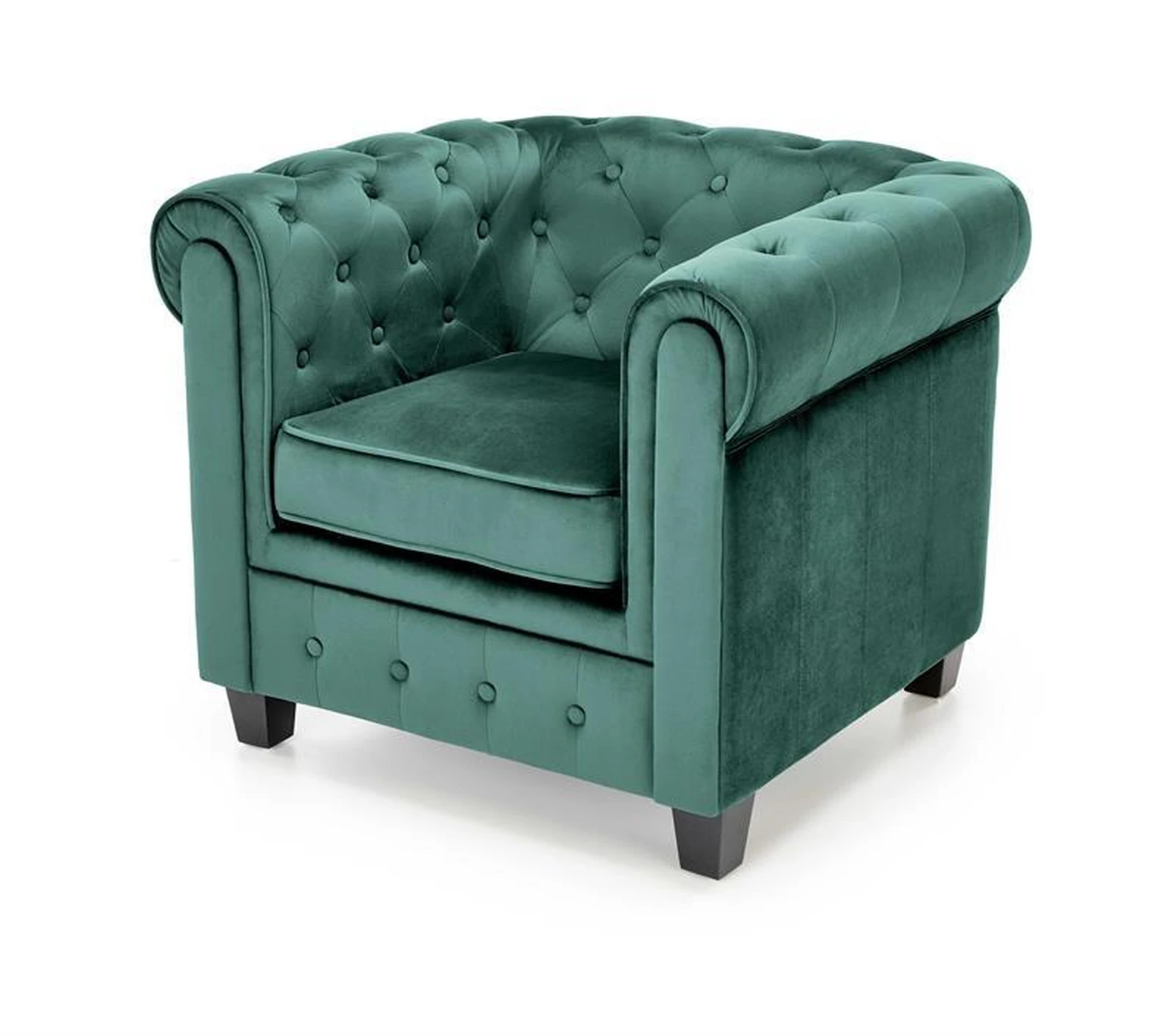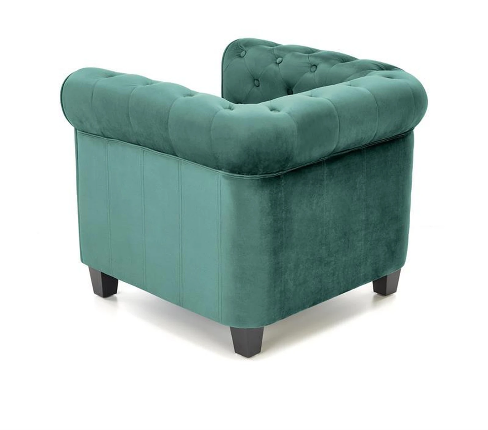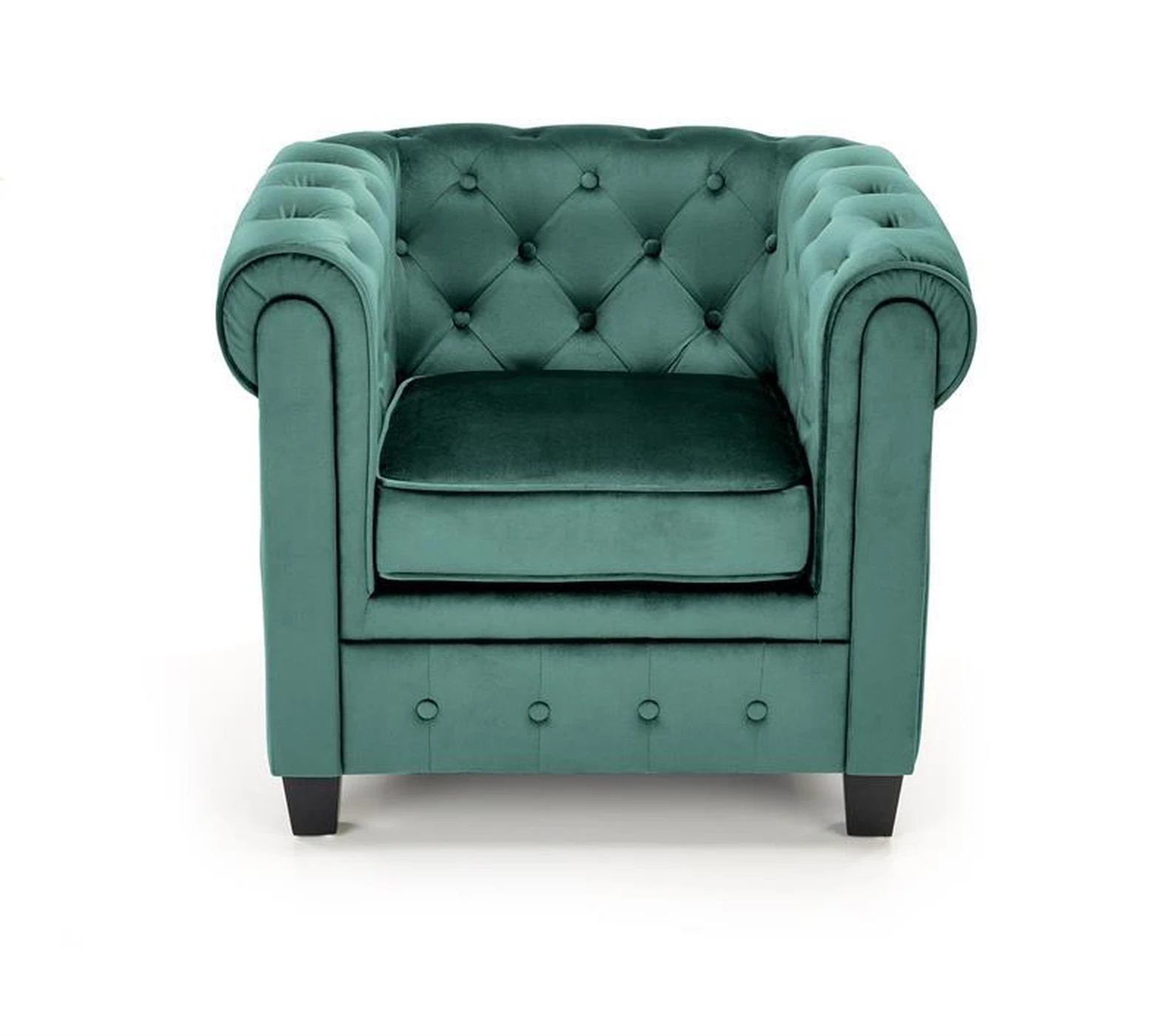 matmenys: 62/75/73/48 cm, medžiaga: aksominis audinys / medžio masyvas, spalvos: apmušalai - tamsiai žalia, kojos - juodos