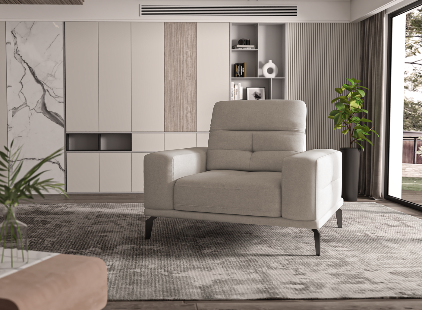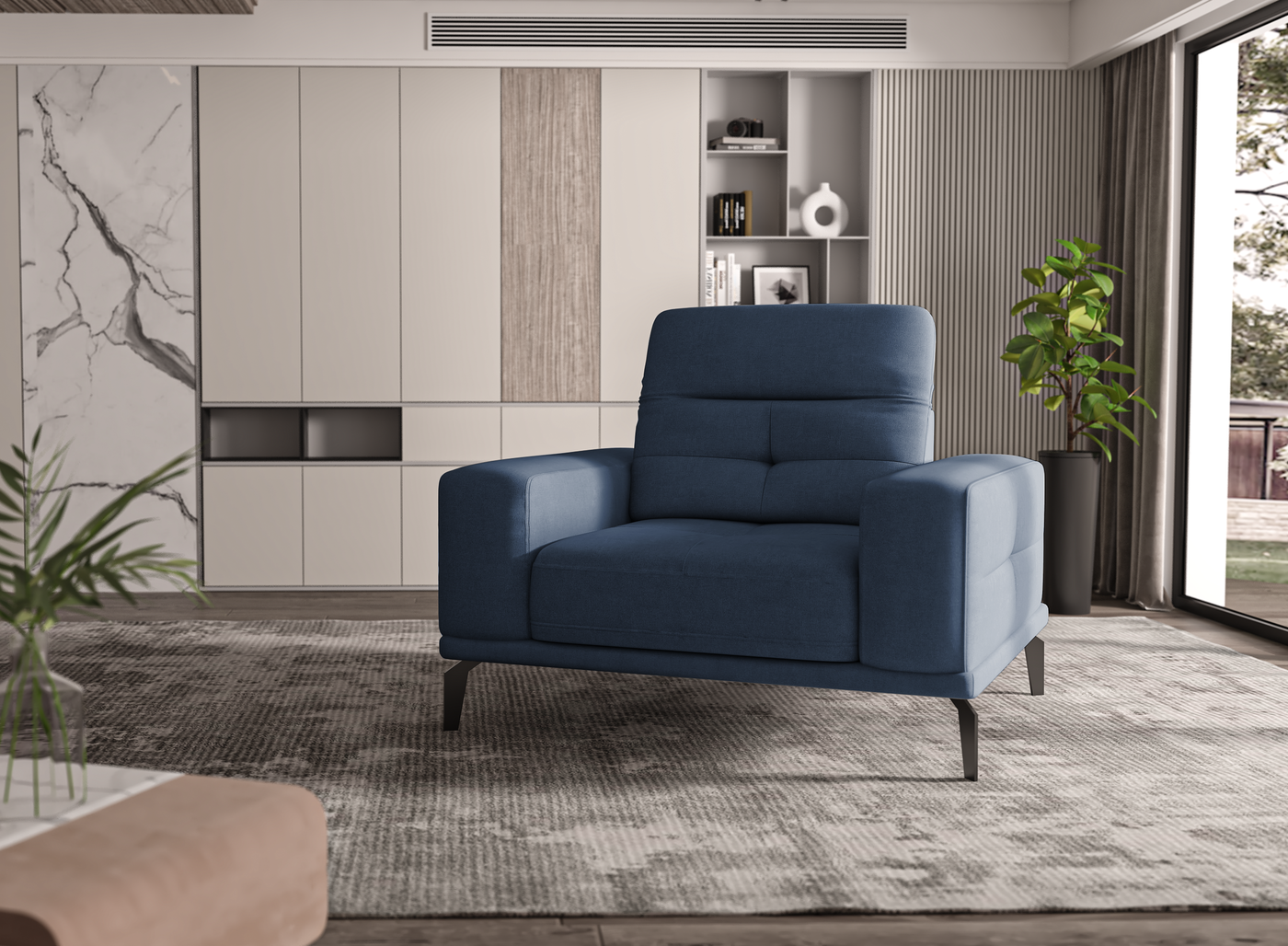 Lygių linijų ir erdvios sėdynės fotelis EL4959 yra itin jaukus. Tvirtos 17 centimetrų plieninės kojelės gražiai dera su klasikine baldų išvaizda. Inovatyvus HR putų užpildas sustiprina komforto jausmą. EL4959 buvo sukurtas atsižvelgiant į patogumą ir yra išradingas klasikinio fotelio atnaujinimas, nes jame yra reguliuojama galvos atrama ir atlošas. Dabar keliais paprastais judesiais galite pakeisti kėdės padėtį.EL4959 yra išmatavimų: 125 x 113 x 106 cm. Dėl savo klasikinio dizaino ir paslėptų patogumų fotelis tiks tiek moderniame, tiek tradiciniame interjere. Be to, galima pasirinkti fotelio EL4959 spalvą ir apmušalų tipą. Taip pat pasiūlyme yra sofa, pufas ir kampinis EL4959.