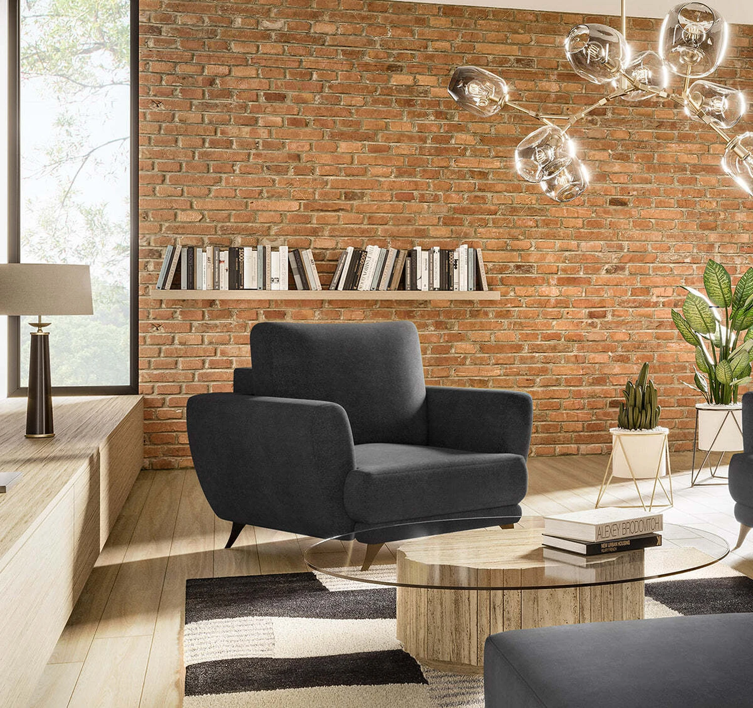 EL7389 fotelis tarnaus ilgai, nes sėdynės pagalvėlė užpildyta didelio elastingumo HR putomis, kurios gerai prilaiko kūną ir atsistojus greitai atgauna pirminę formą. Baldo matmenys: 102 x 94 x 87 centimetrai, todėl lengvai tilps į daugybę išdėstymų. EL7389 yra nesenstančio dizaino ir aukštų porankių su subtiliomis siūlėmis. Be to, išskirtinis fotelio bruožas – 13 centimetrų kojos, pagamintos iš juodo plieno. Taip pat yra tinkama EL7389 sofa ir pufas.