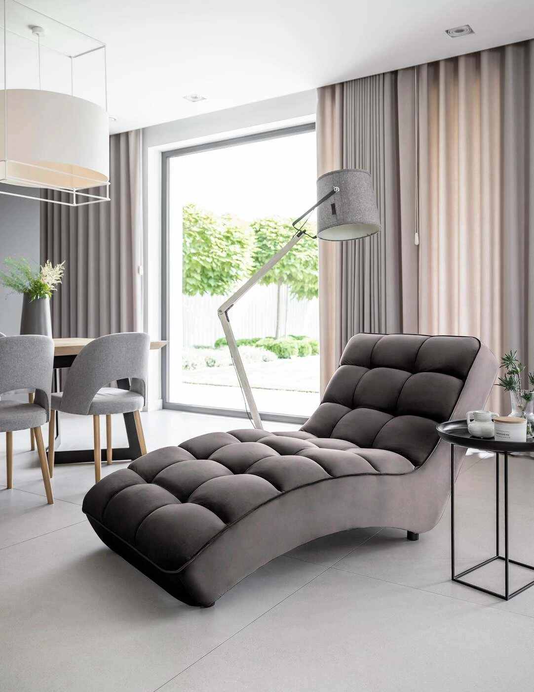 Šezlongai yra puikus estetikos ir komforto derinys. Štai koks yra elegantiškas EL9873 šezlongas – baldas, kuriame tradicinis dizainas patyrė šiuolaikinę metamorfozę. EL9873 turi puikų profilį su visu atlošu, kontūruota sėdyne ir keturių centimetrų kojomis. Šezlongas, aptrauktas įvairiausiais kolekcijos audiniais, puoštas dailiomis siūlėmis. Dėl to baldas yra malonus liesti, o iš itin elastingo HR porolono pagaminta amortizacija, esanti tiek sėdynėje, tiek atloše, suteikia komfortą ir atramą. Šezlongas EL9873 – tai baldas, kuris kviečia praleisti ypatingas akimirkas vienam ar kitų žmonių kompanijoje. Tai gali tapti puikiu priedu prie poilsio kambario baldų. Jos matmenys, 85x170x85 centimetrai, leidžia ramiai pailsėti tiek sėdint, tiek gulint.