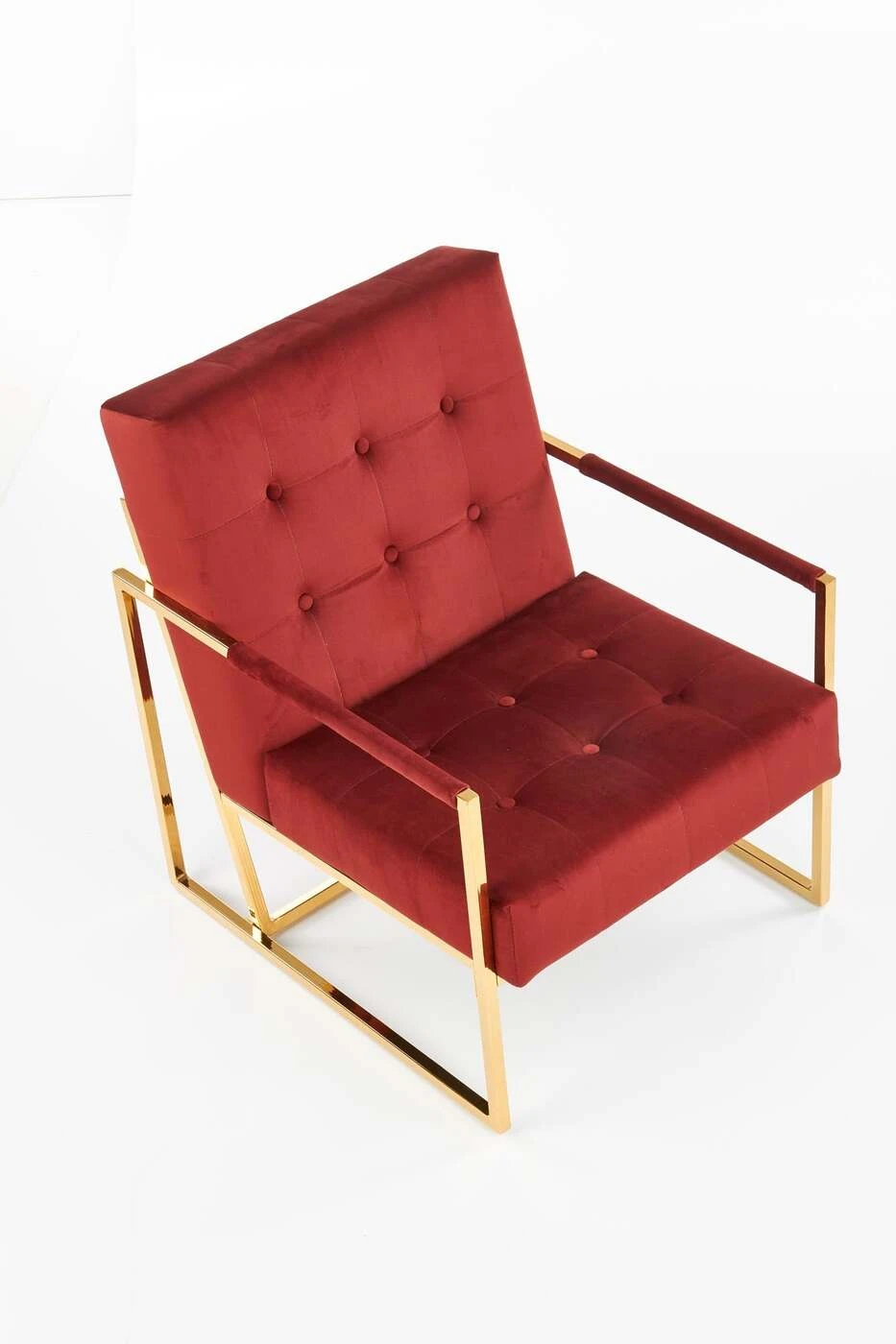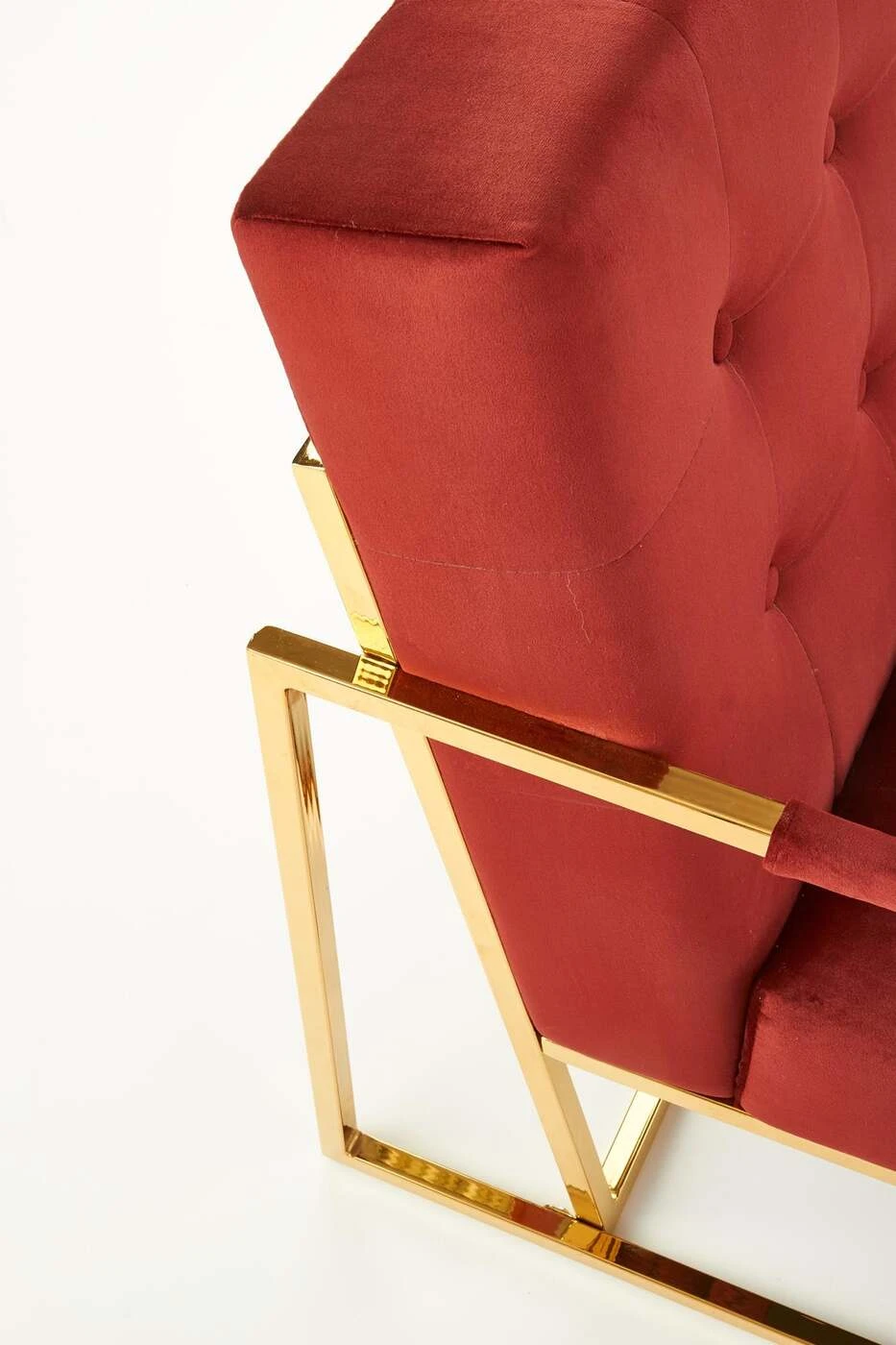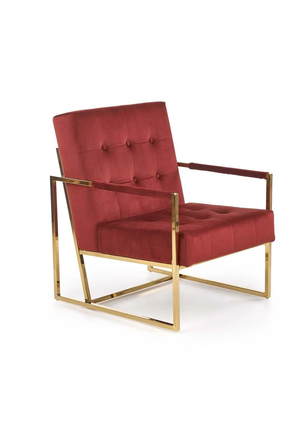 matmenys: 55/54/78/46 cm, medžiaga: audinys / chromuotas plienas, spalva: apmušalai - tamsiai raudona, kojos - aukso