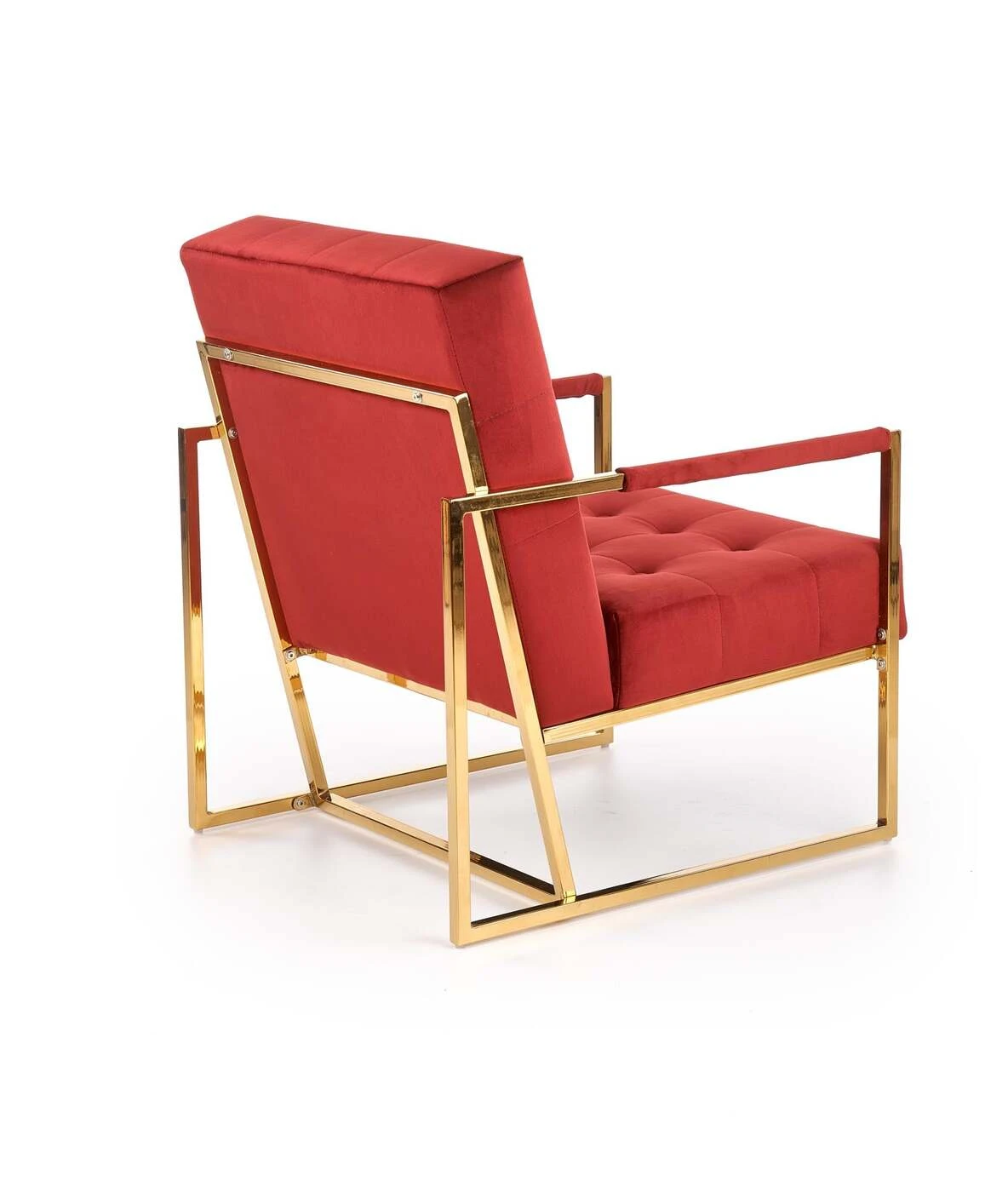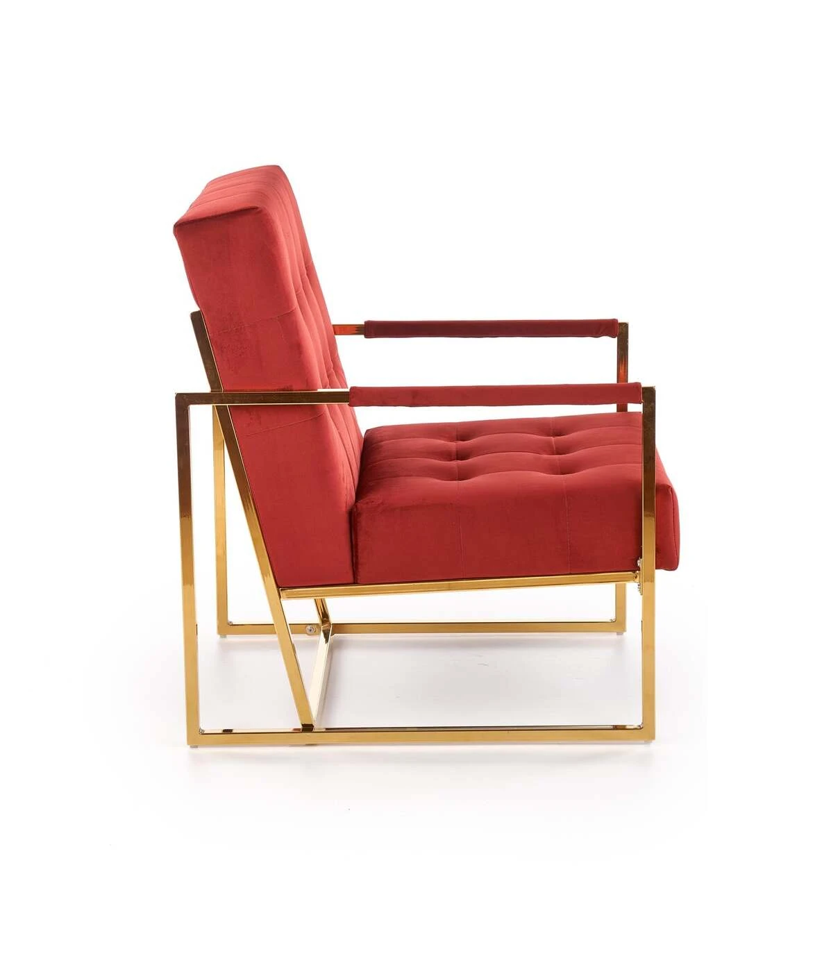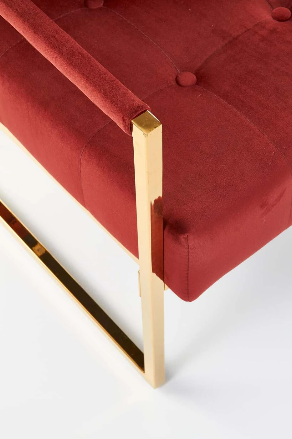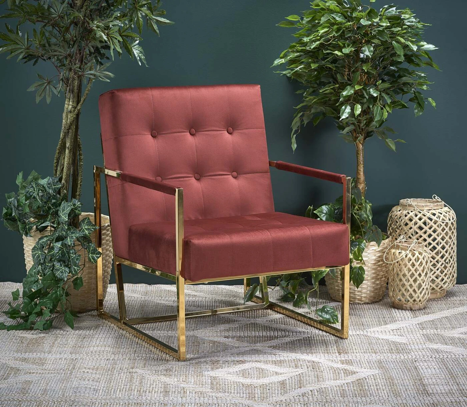matmenys: 55/54/78/46 cm, medžiaga: audinys / chromuotas plienas, spalva: apmušalai - tamsiai raudona, kojos - aukso
