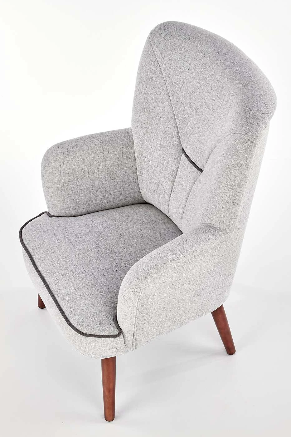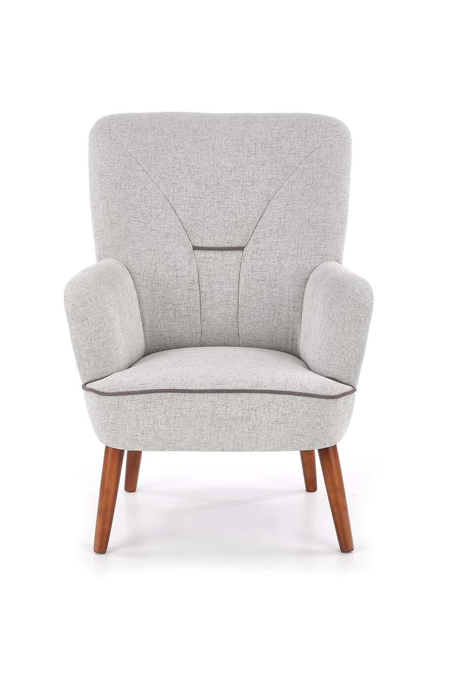 matmenys: 76/78/102/43 cm, medžiaga: audinys / medžio masyvas, spalva: apmušalai - šviesiai pilka, kojos - riešutas