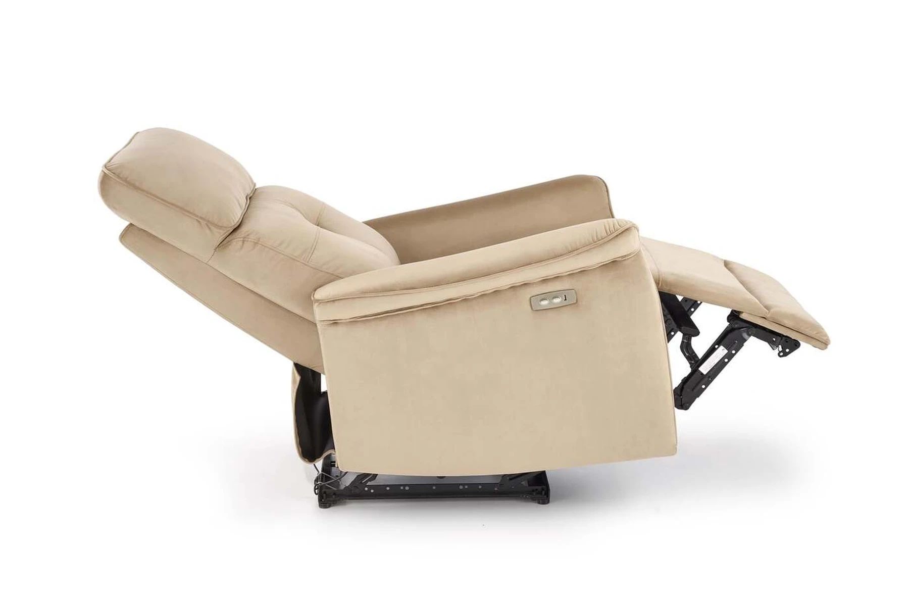 matmenys: 80/90-170/92-108/46 cm, atlošas su elektriniu sulankstymu / USB kištukas, medžiaga: aksominis audinys, spalva: smėlio spalvos