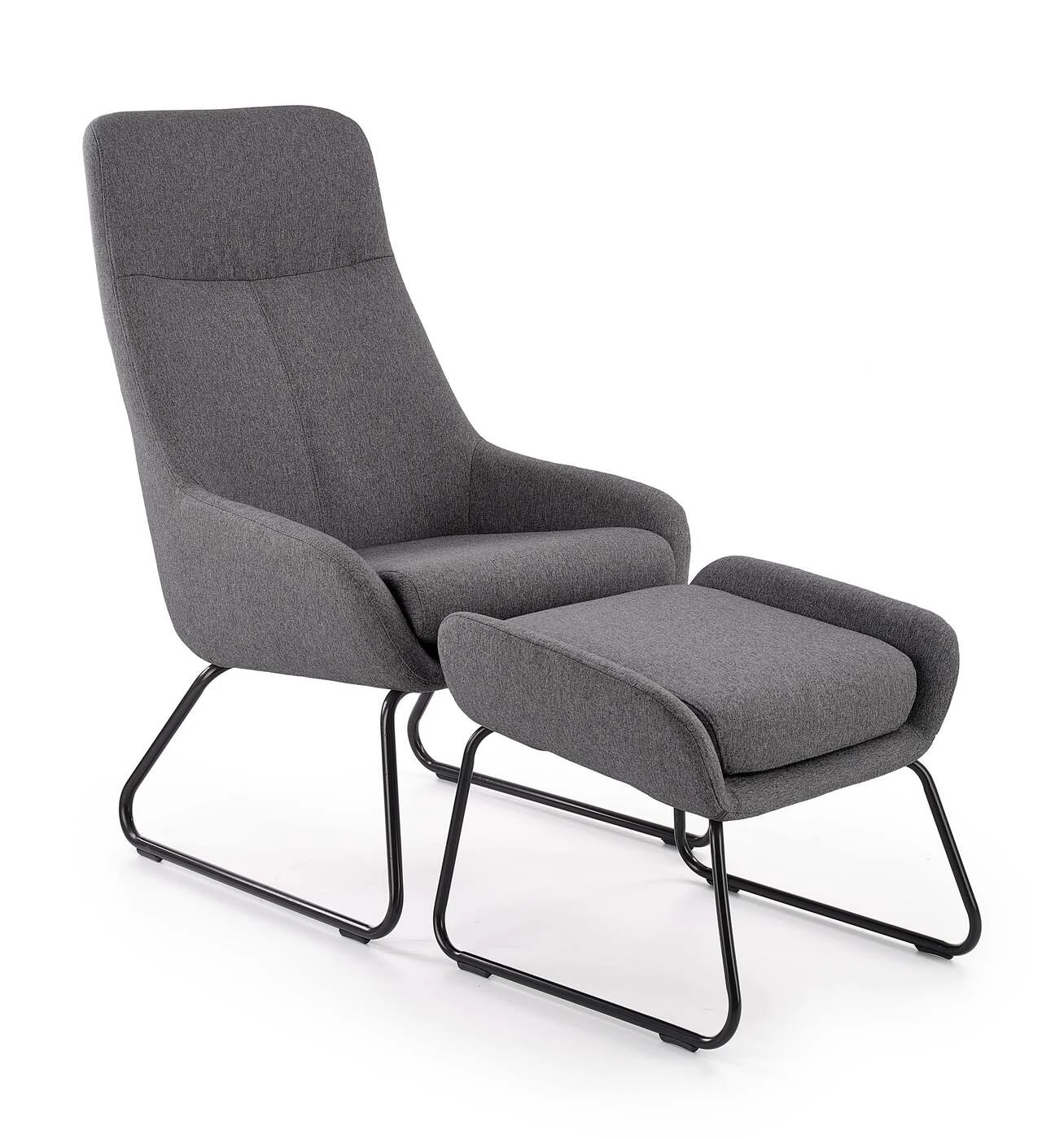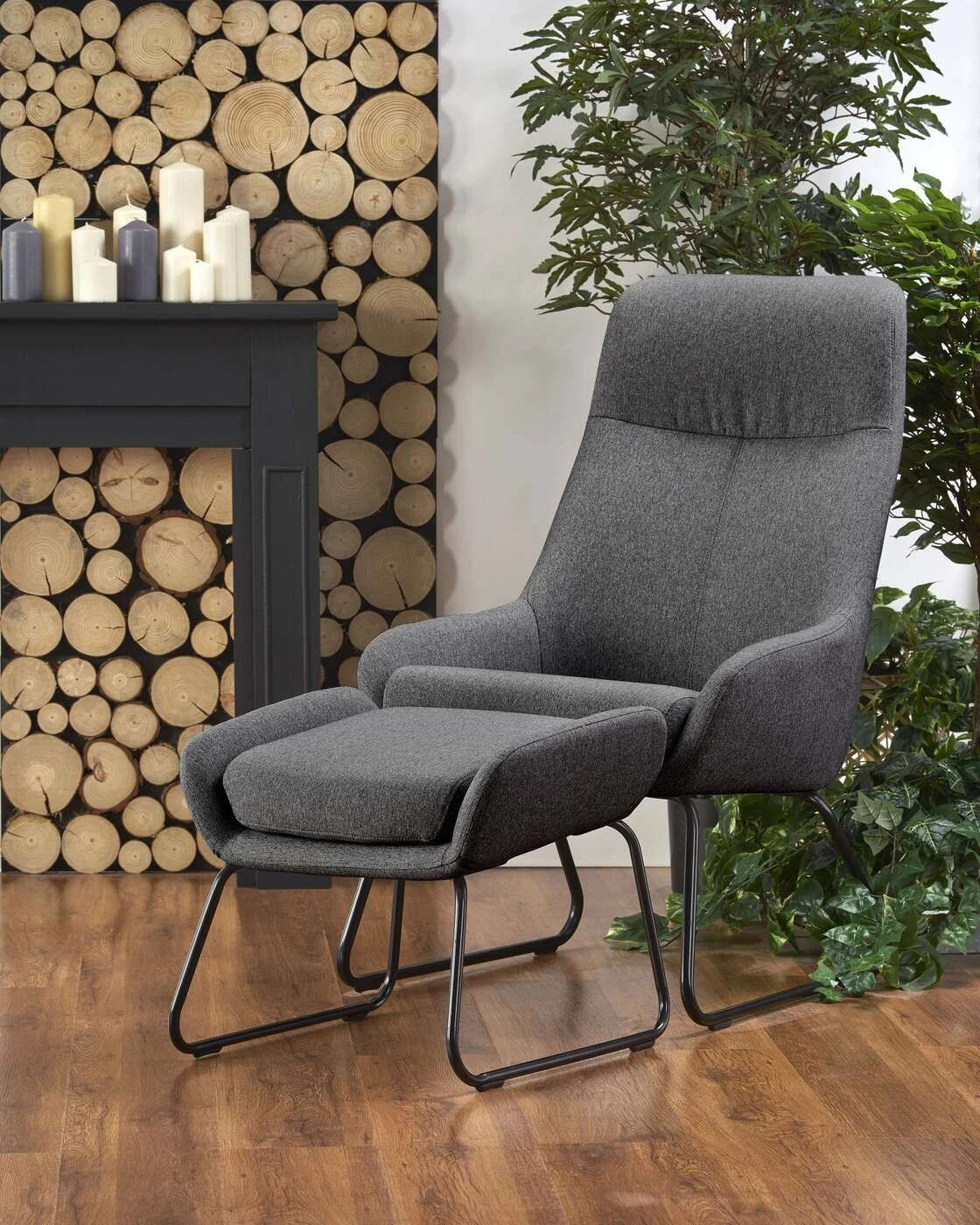 matmenys: 63/47/105/48 cm, laisvalaikio kėdė su atrama kojoms, medžiaga: audinys / milteliniu būdu dažytas plienas, spalva: šviesiai pilka