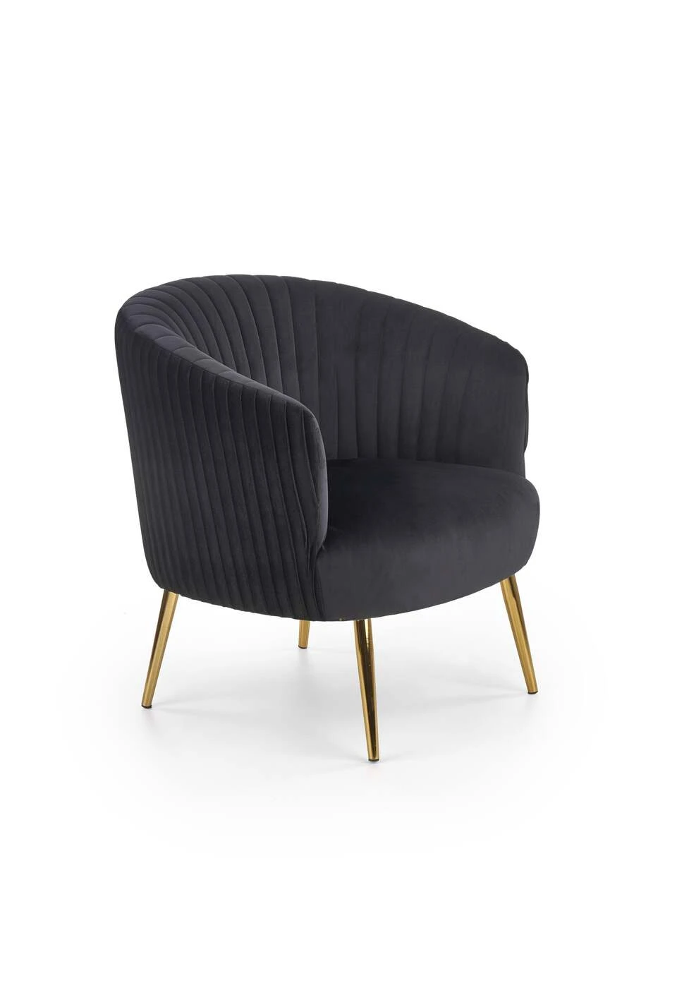 matmenys: 78/72/80/45 cm, medžiaga: audinys / chromuotas plienas, spalva: apmušalai - juoda, kojos - aukso