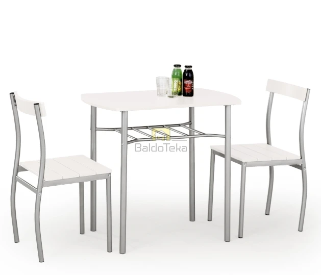 Šiuolaikiškas baltas stalas su kėdėmis – puikus sprendimas jūsų erdvei