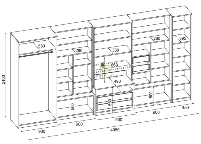 Plotis/Aukštis/Gylis: 405/210/53 cm.